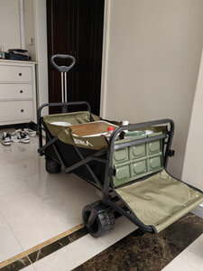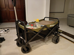 买了越野款加桌板的,今天浅浅用下,还是很好推的,碳钢的重量确实很重,原始人的用料扎实!