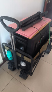 一直打算买一个带桌板的户外拖车,看了很多品牌,最终选择了原始人这个品牌。这款带桌板的拖车,承载量大,达到200公斤,容量也大,有200多升;大车轮,带刹车,行的稳也停的稳;带桌板,相当于多了一个桌子,方便户外物品摆放;拖车可折叠,收纳方便。