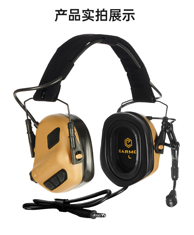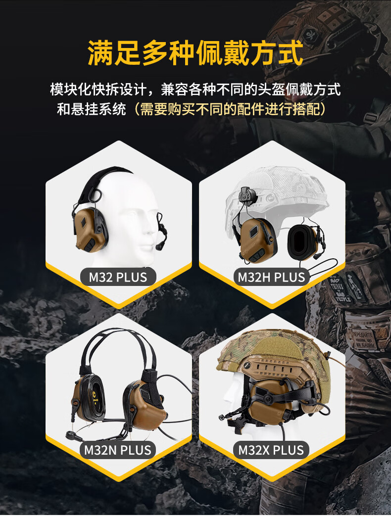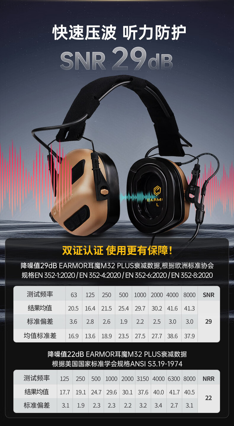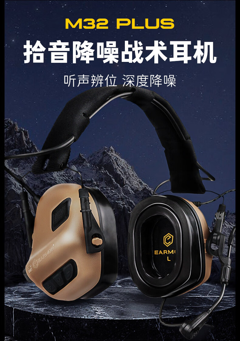 EARMOR耳魔M32 Plus拾音降噪战术耳机头戴式听力防护对讲机射击隔音耳罩 M32 PLUS战术黑
