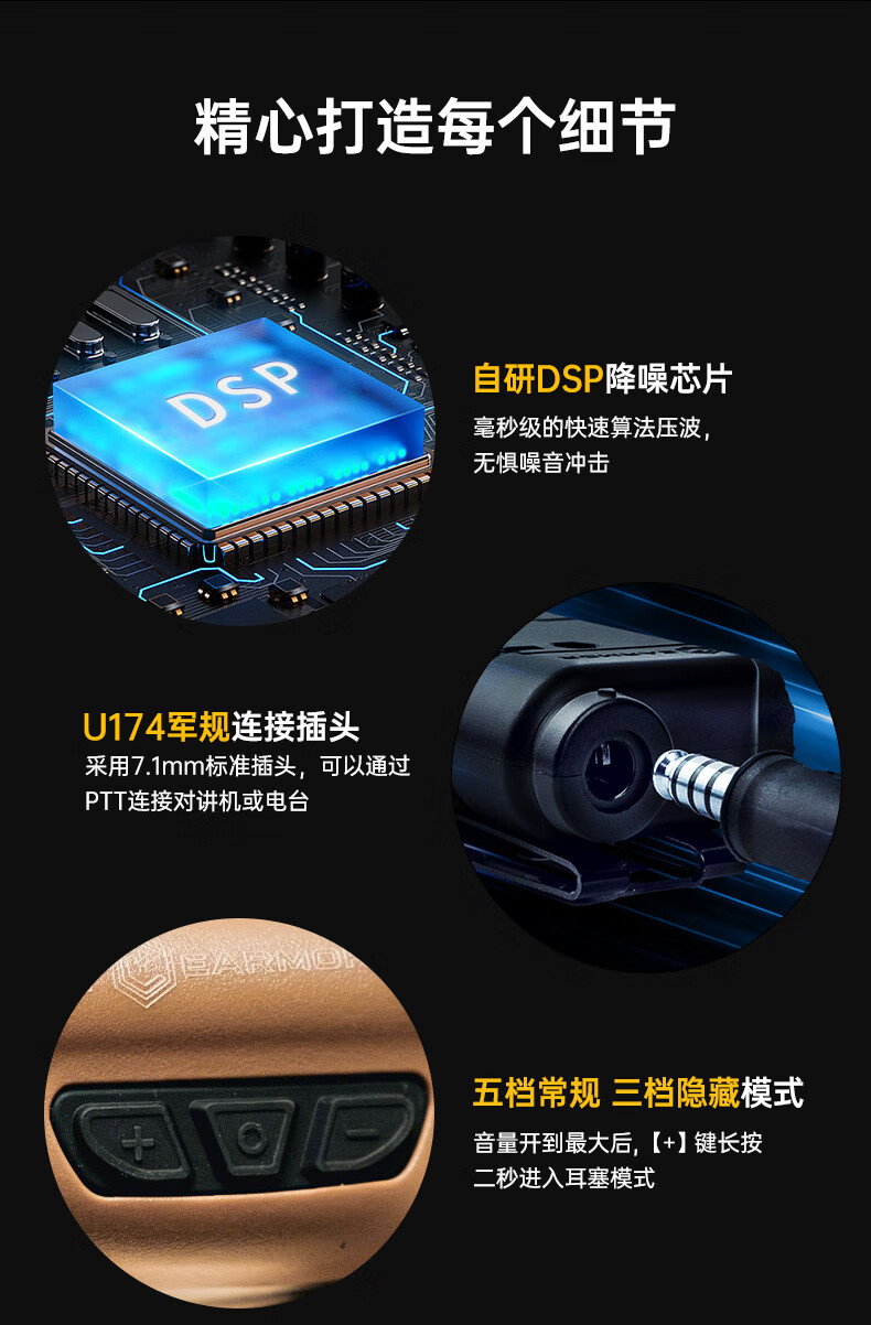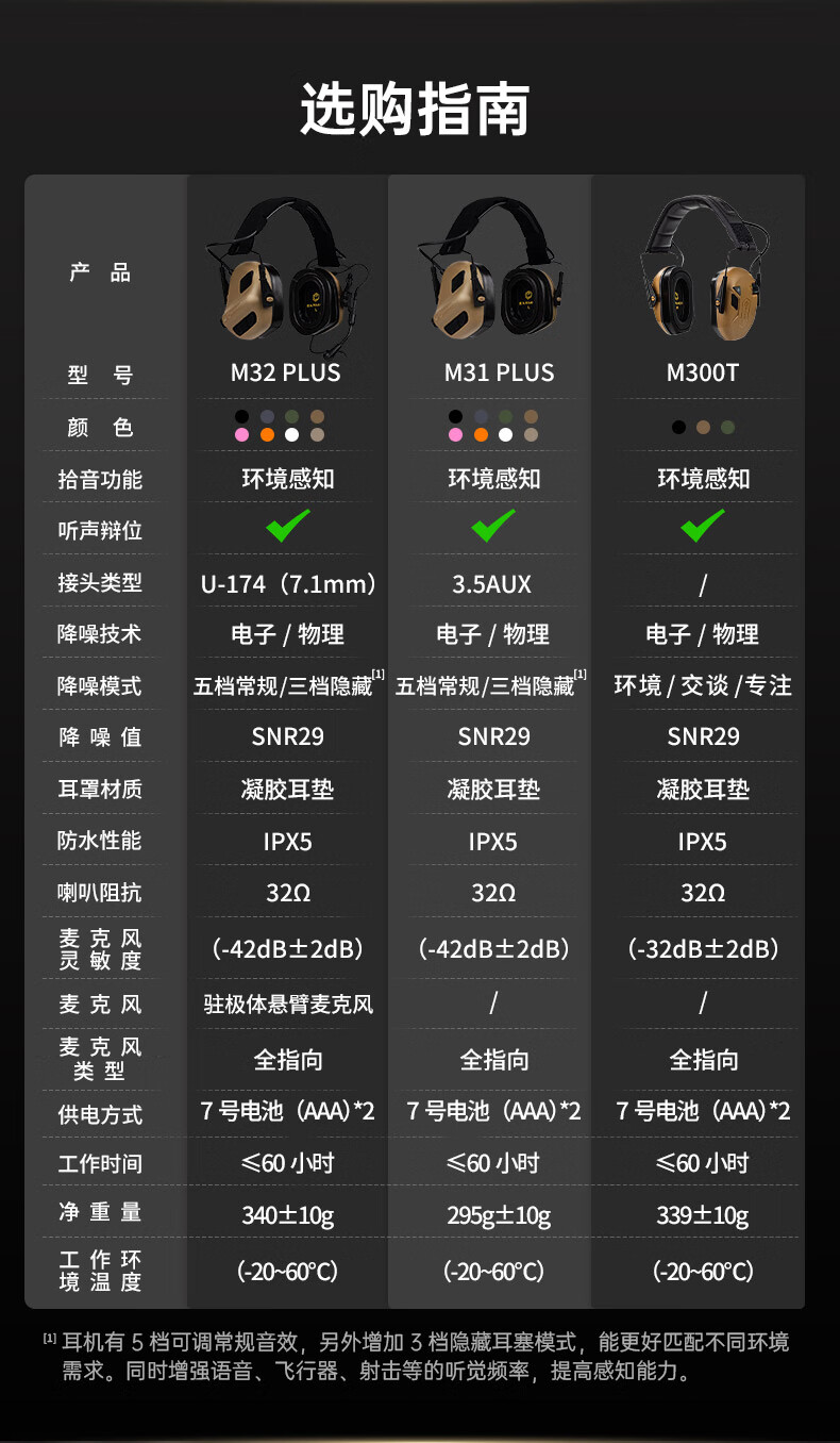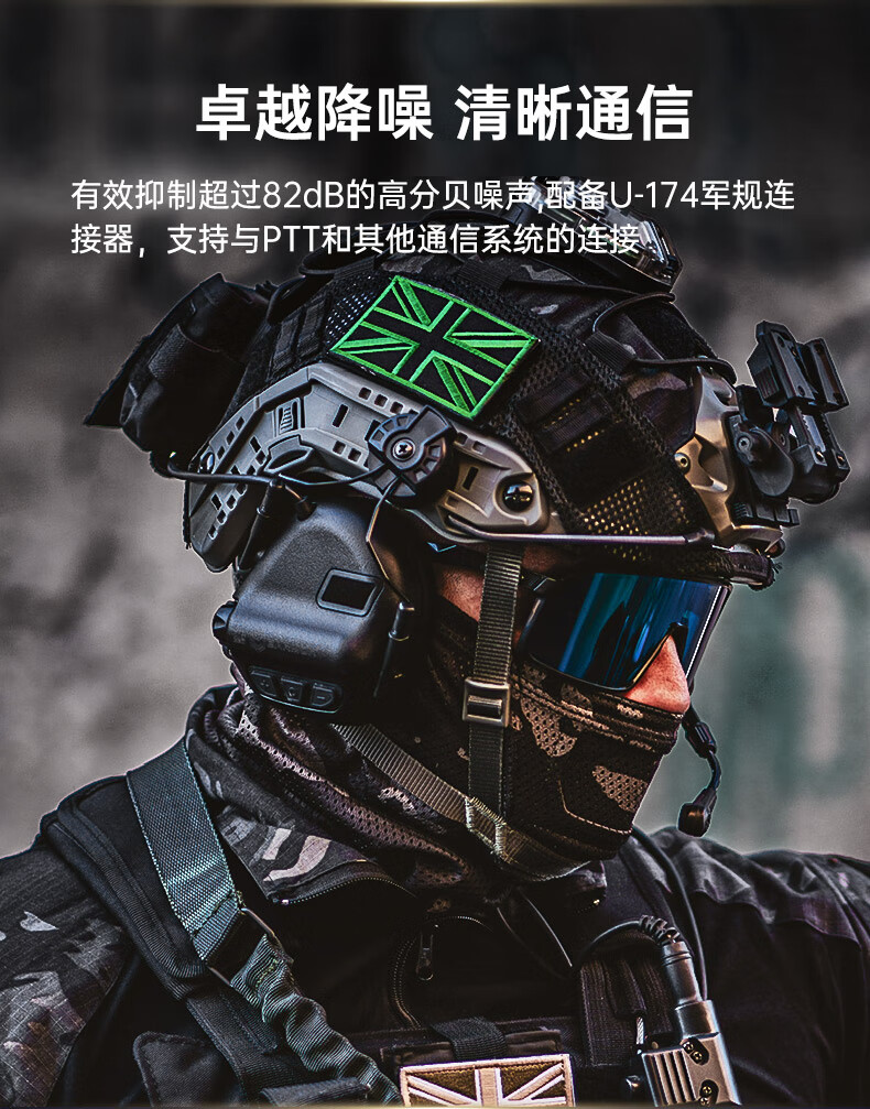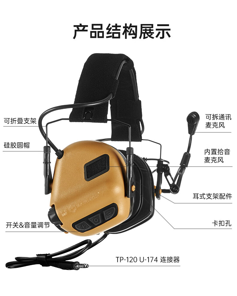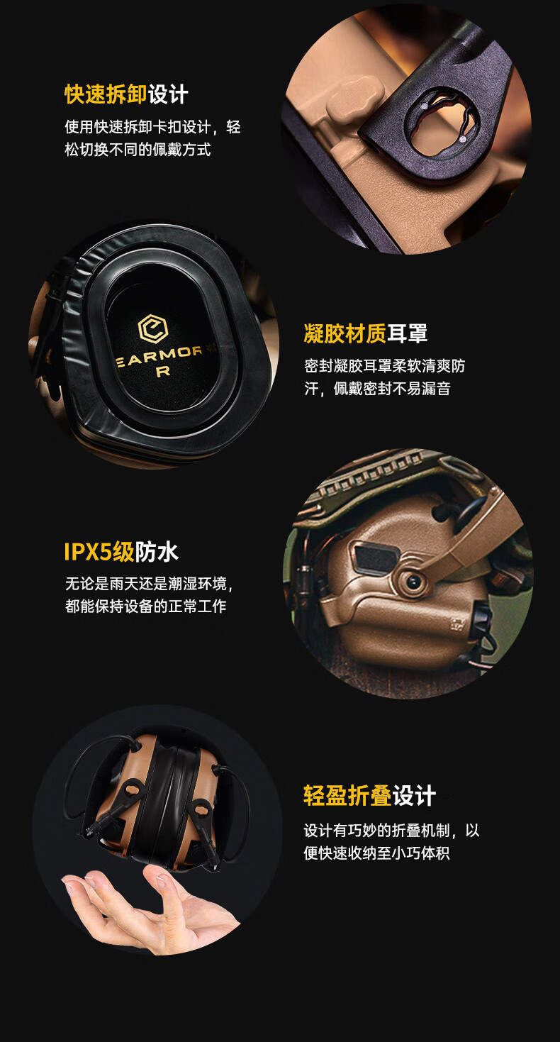 EARMOR耳魔M32 Plus拾音降噪战术耳机头戴式听力防护对讲机射击隔音耳罩 M32 PLUS战术黑