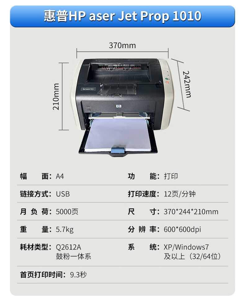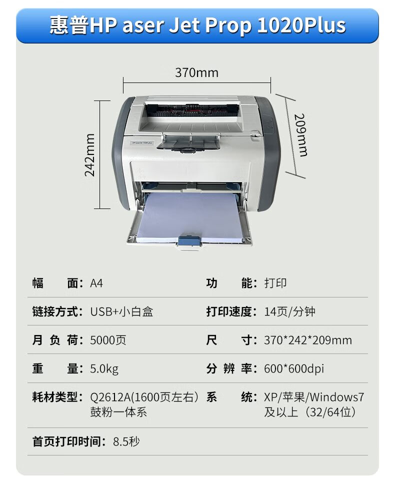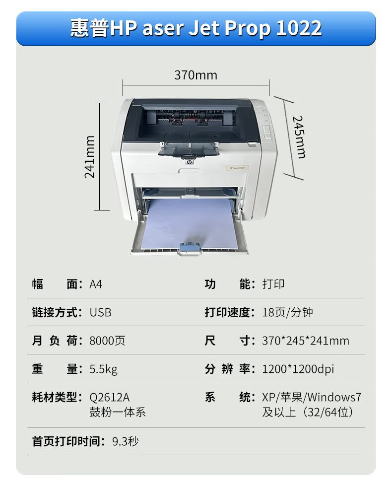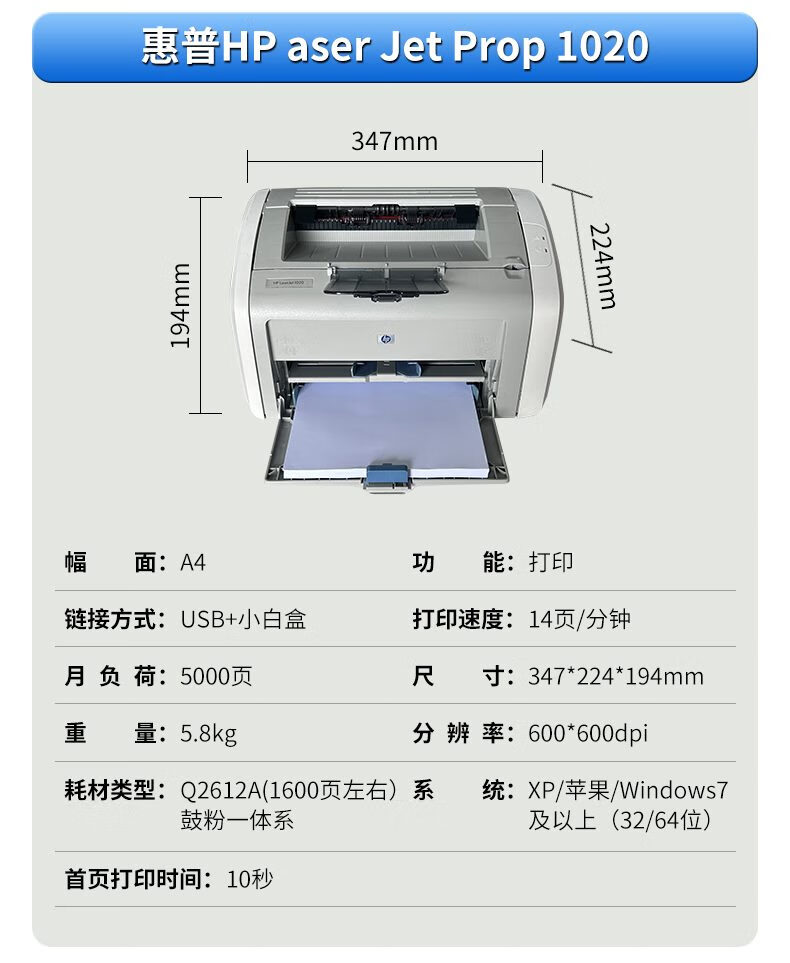 小米惠普1020plus黑白激光打印机小型家用办公11061008A4手机无线 惠普hp1010/1012/1015