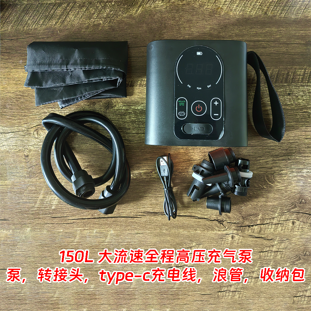 户外电动充气仪便携式露营气垫床多功能桨板充气泵拉丝垫高压泵 黑色