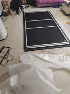 刚装好幕布,简单调了下色调,亮度真没得说!等吊装架到货后再慢慢调。