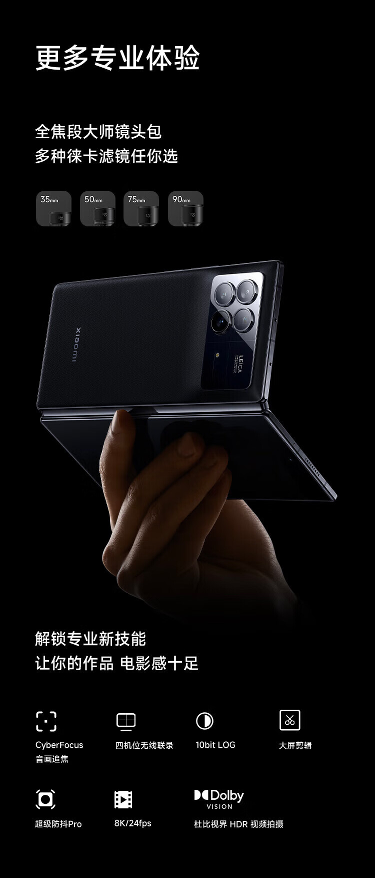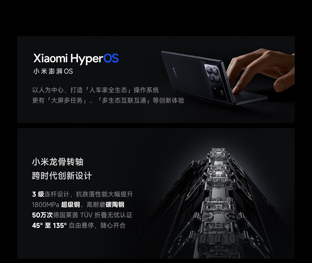 小米(MI)X Fold 3 龙骨转轴 第二代骁龙8处理器 徕卡光学全焦段四摄 龙鳞纤维版 折叠屏 月影黑 12GB+256GB
