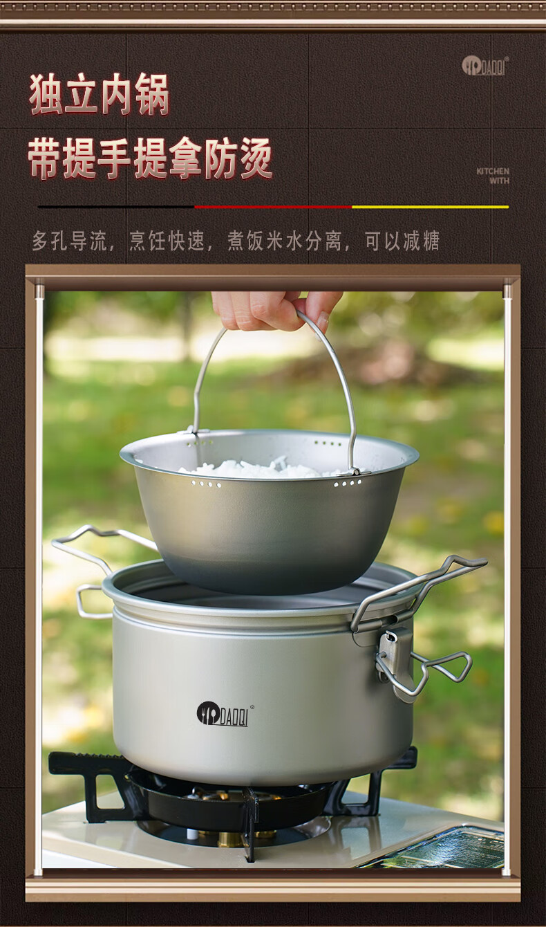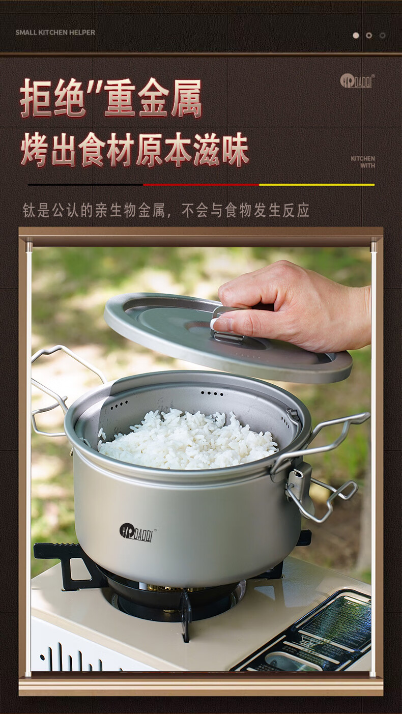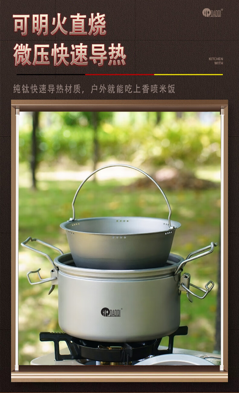 岛奇(Daoqi)纯钛微压锅户外锅具蒸煮焖多功能露营旅行便携煮饭锅无涂层纯钛锅 微压锅 内格提手无孔(送收纳袋)