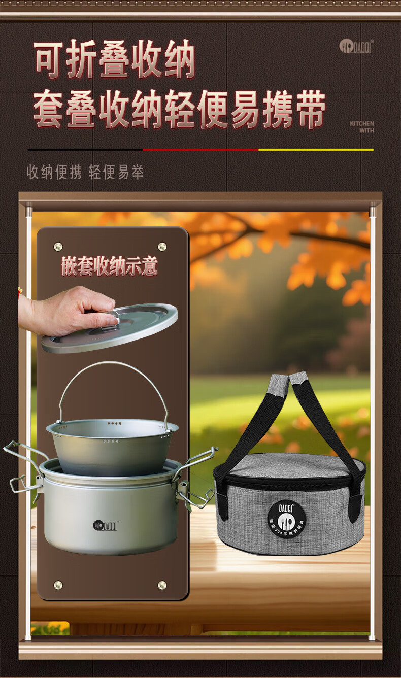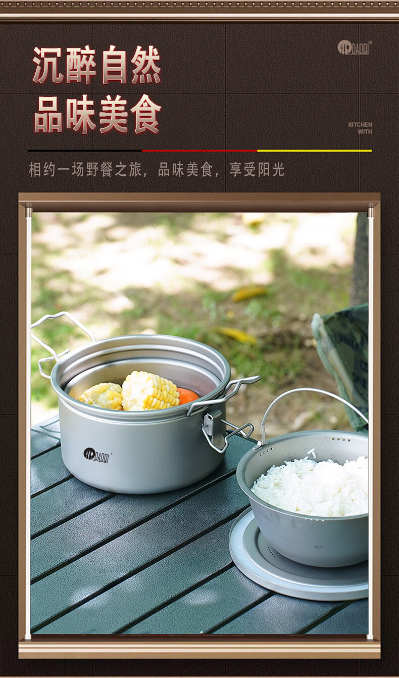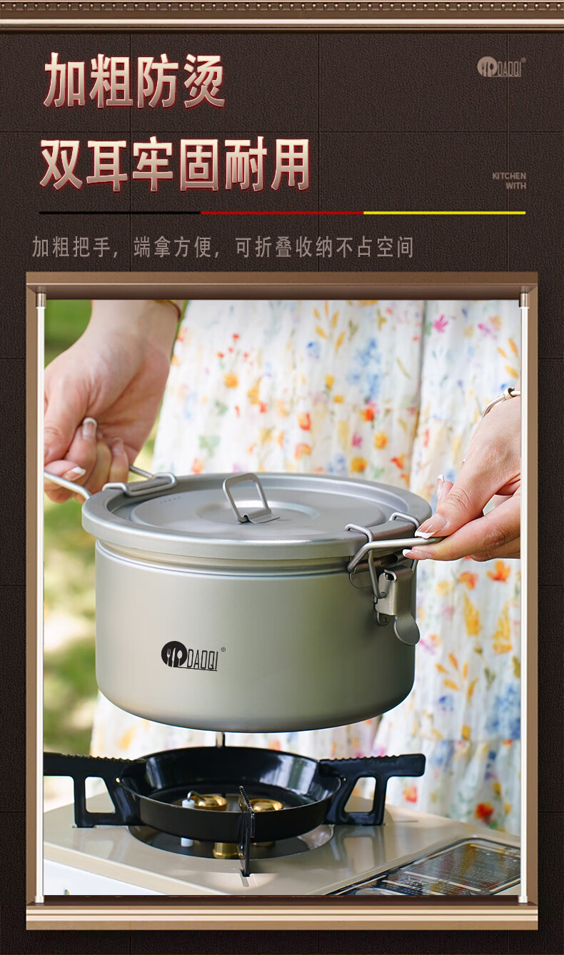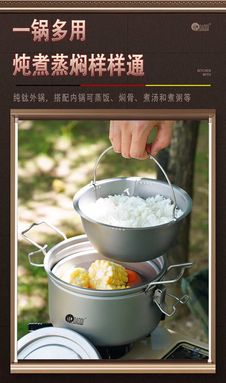 岛奇(Daoqi)纯钛微压锅户外锅具蒸煮焖多功能露营旅行便携煮饭锅无涂层纯钛锅 微压锅 内格提手无孔(送收纳袋)