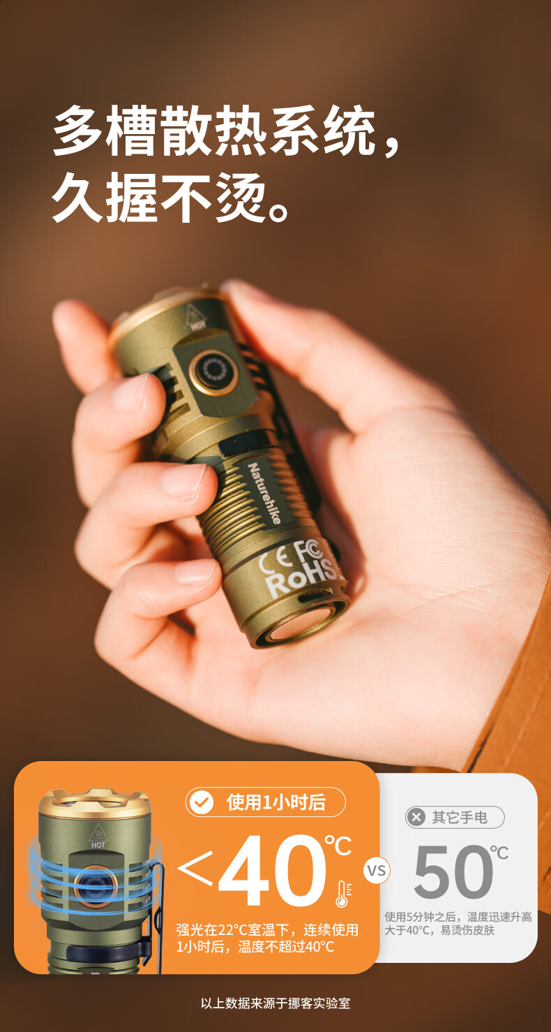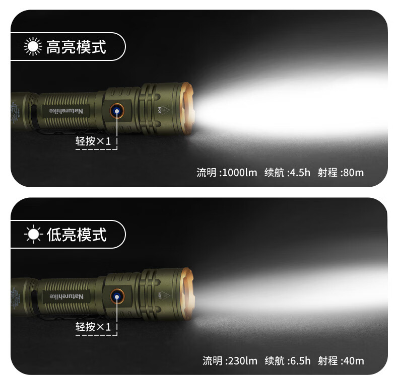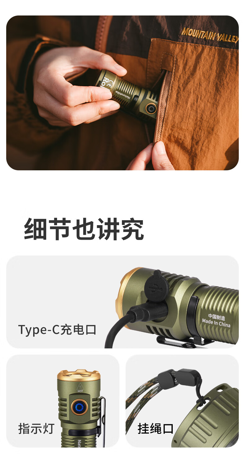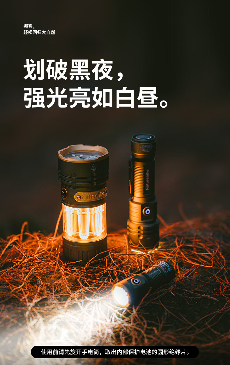NatureHike挪客强光超亮手电户外远射家用小型便携充电led手电筒多功能照明 小款-绿色