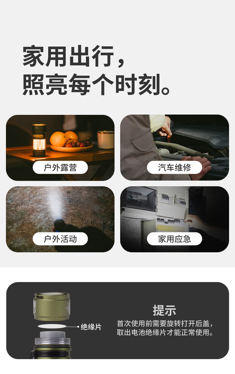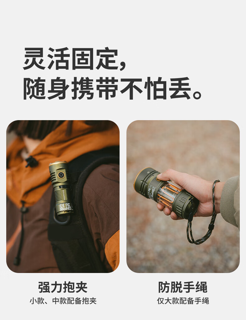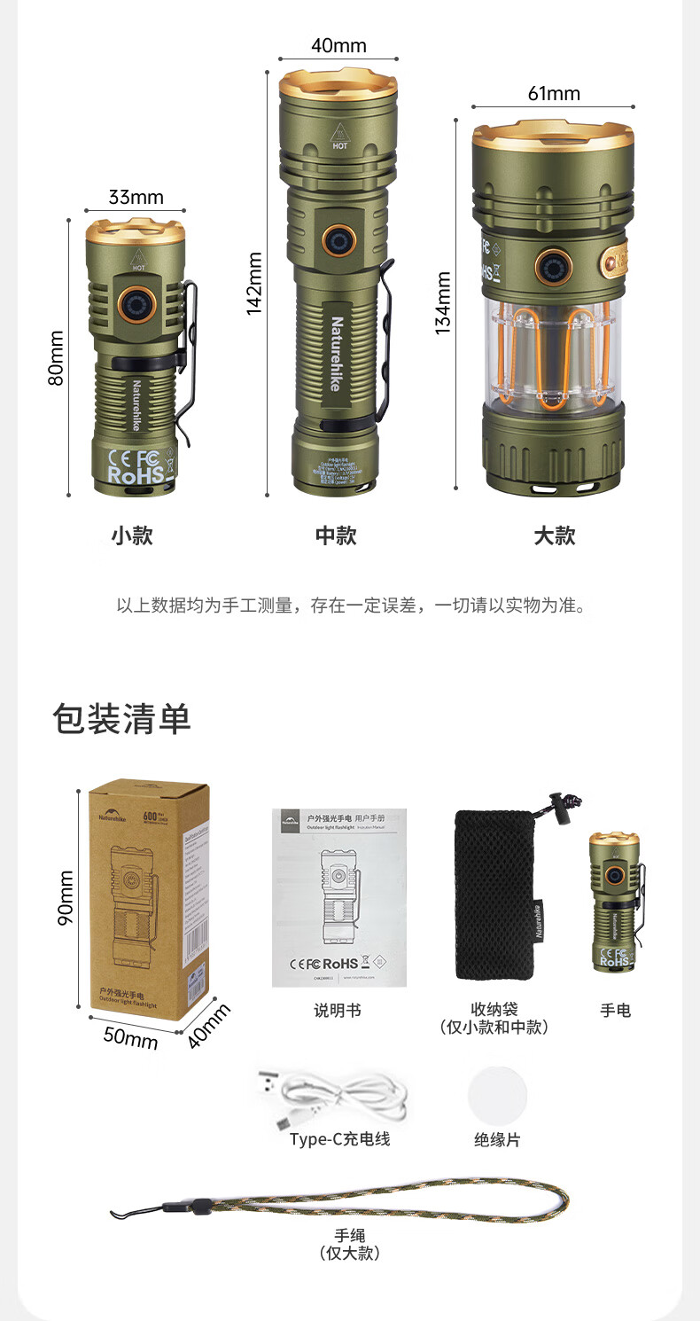 NatureHike挪客强光超亮手电户外远射家用小型便携充电led手电筒多功能照明 小款-绿色