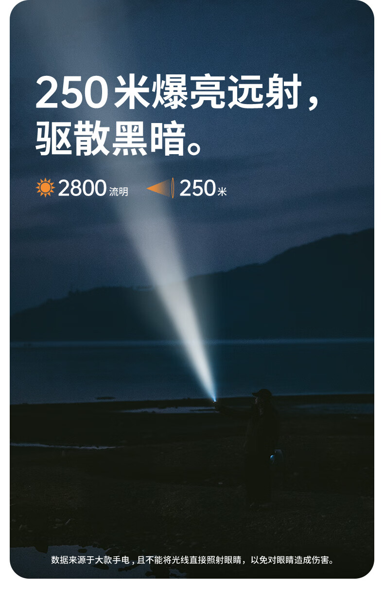 伯班克德国品质强光手电筒强光200000流明穿天炮超长续航野外生存大容量 65w至尊款 超长续航