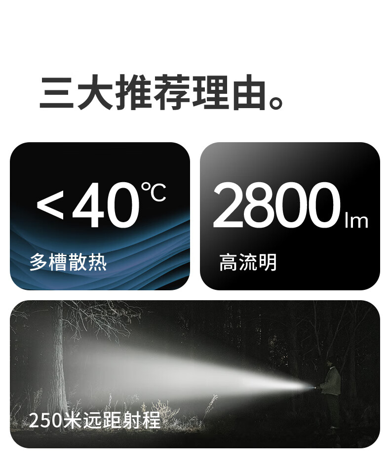 公牛适用强光手电筒可充电小型便携户外超亮远射应急耐家用LED灯 9900w普亮_伸缩变焦_智能电显_USB直充