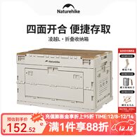NatureHike挪客露营折叠收纳箱户外储物箱自驾游家用塑料收纳盒大容量整理箱 浅米灰/52L