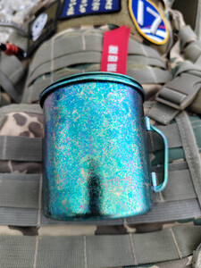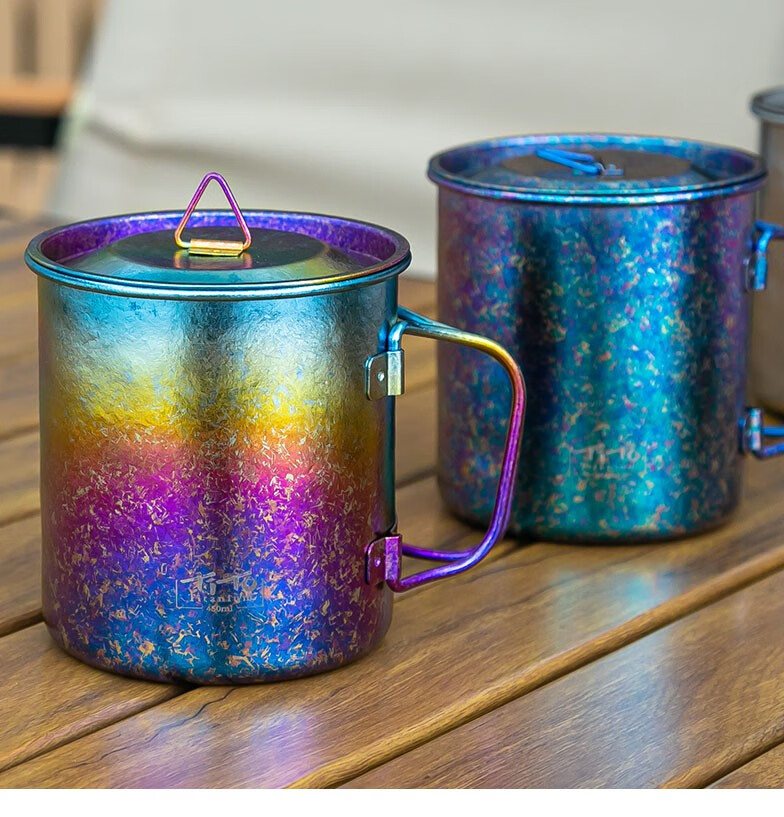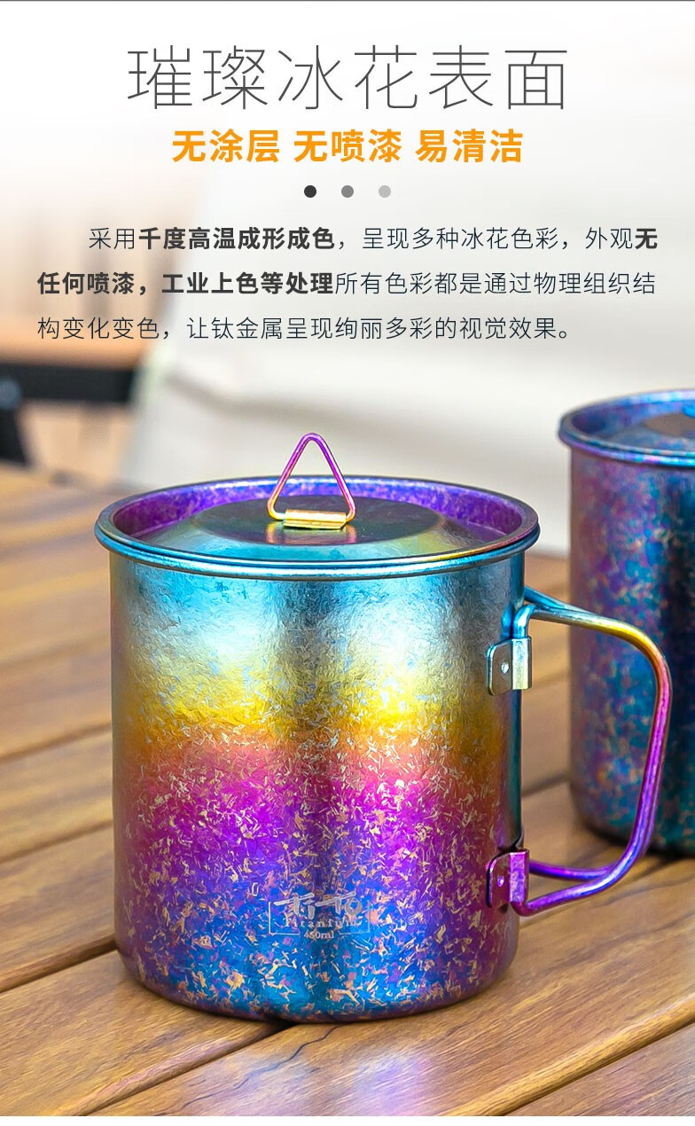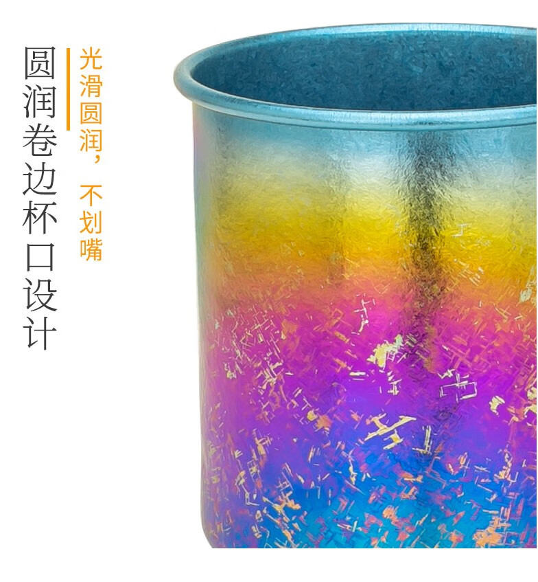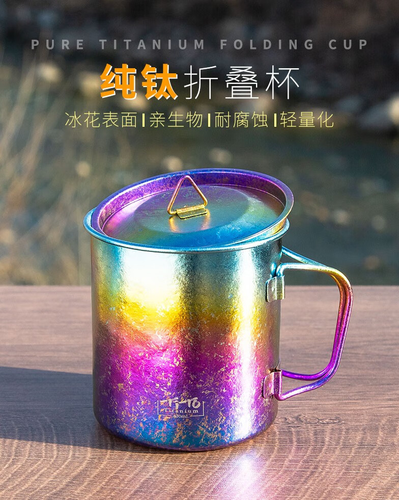 钛途(TITO TITANIUM) 纯钛水杯99.5%钛合金轻量露营单层折叠杯钛茶杯轻便携户外野餐具 纯钛水杯-冰花蓝边炫彩-带盖