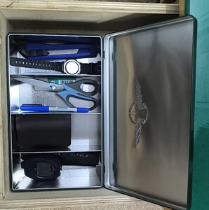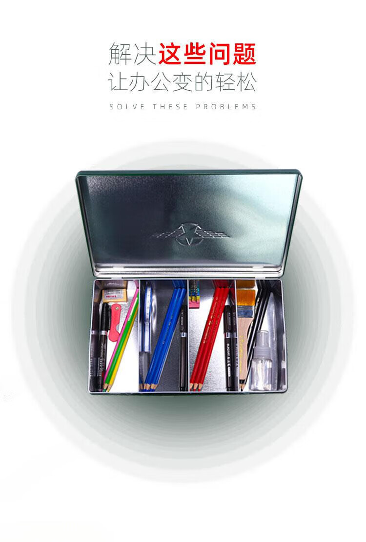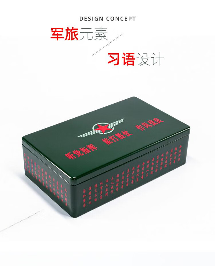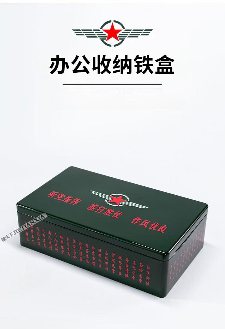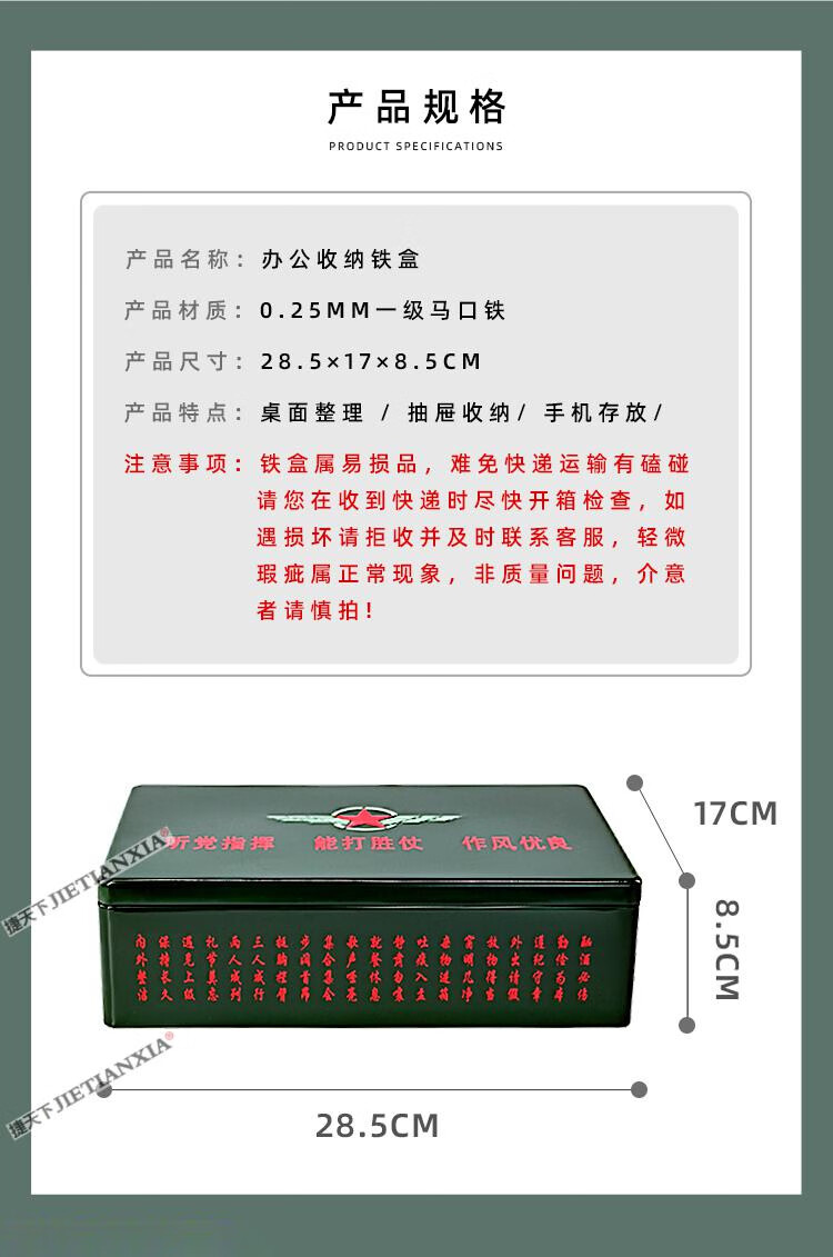 捷天下军迷用品办公用品收纳新款军绿分格整理储物箱手机存放盒石灰盒 习语款办公铁盒 有字