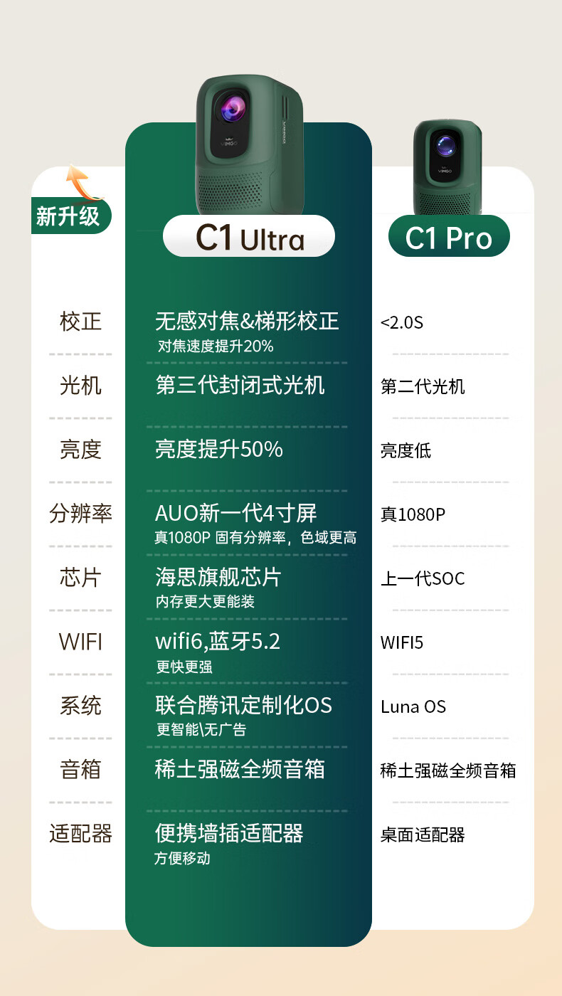 微果(VIMGO)微果新品上市C1 Ultra投影仪高清投影仪家用办公智能家庭影院客厅卧室手机可投屏