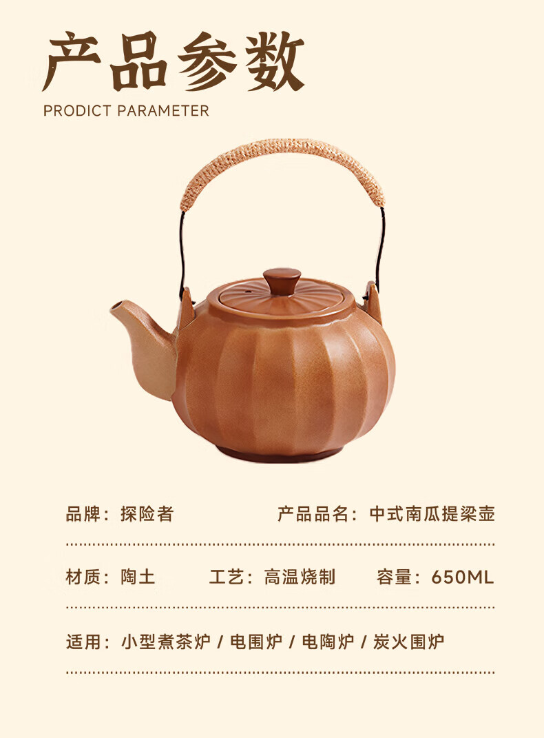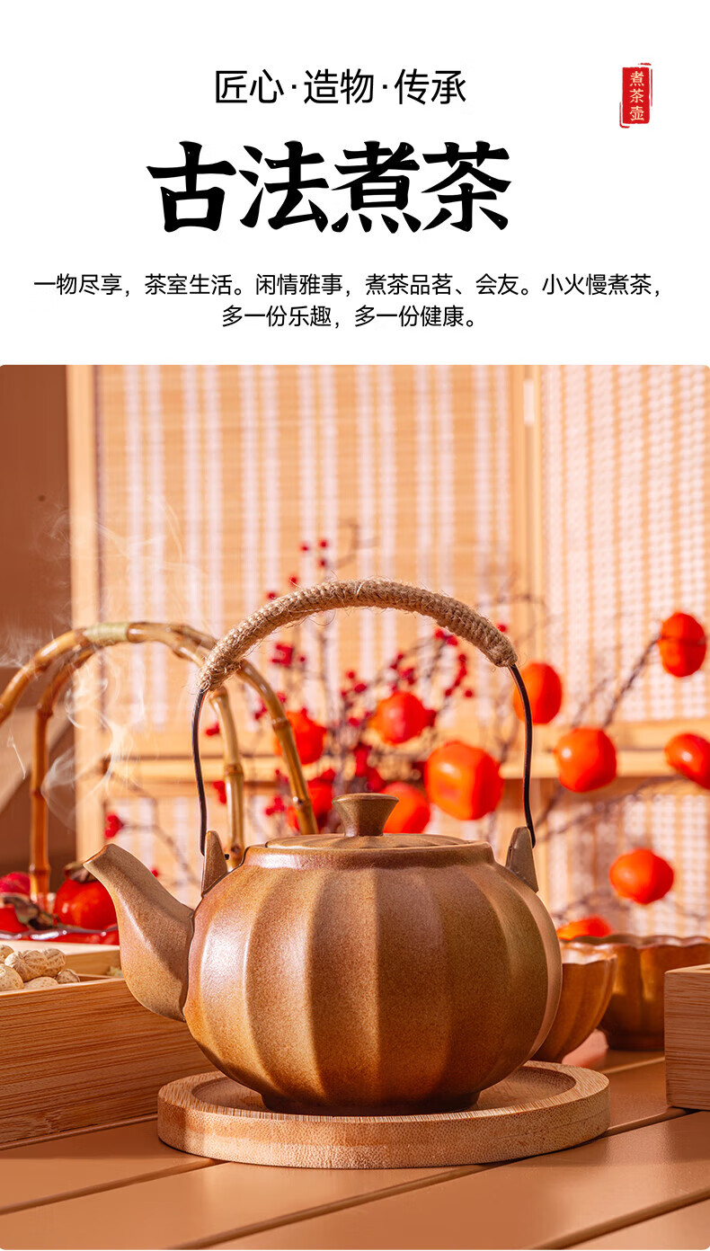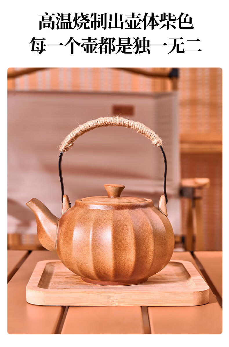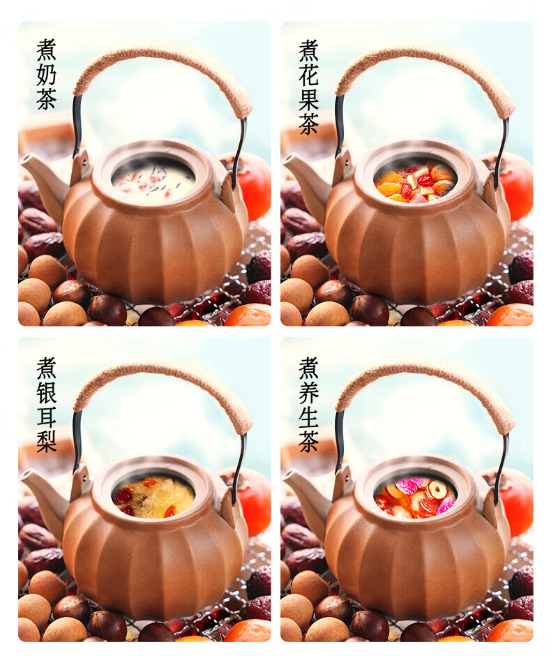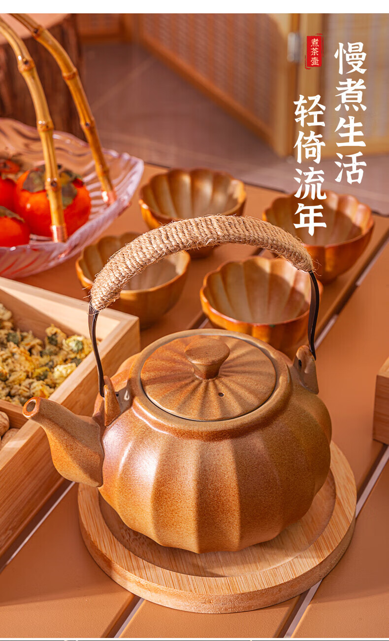 探险者围炉煮茶器具水壶电陶炉煮茶套装陶瓷茶壶家用烤火户外烧水壶 【陶制】南瓜茶壶550ML