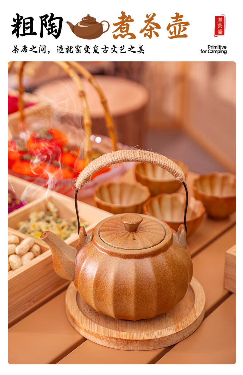 探险者(TAN XIAN ZHE)围炉煮茶陶制南瓜提梁茶壶围炉煮茶壶户外卡式炉煮茶围炉煮茶套装 陶制南瓜壶+便携野营炉