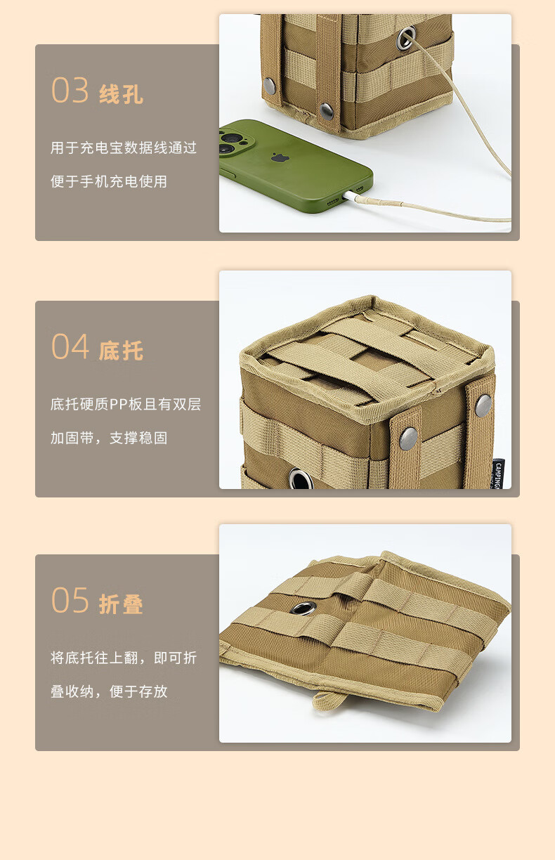 CAMPINGMOON柯曼桌边挂包多用可折叠折叠桌边挂包收纳包充电线孔位带PP板 【BG-1212桌边挂包】