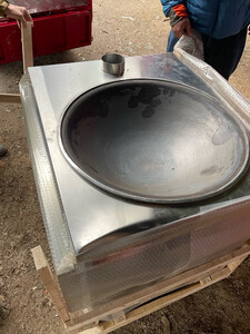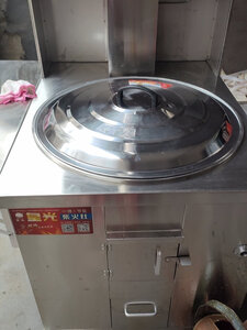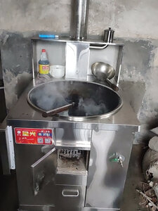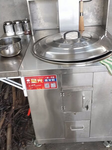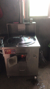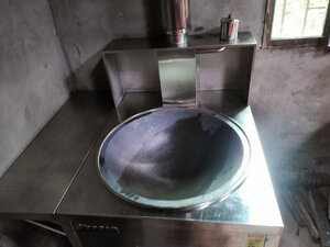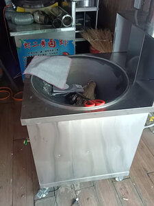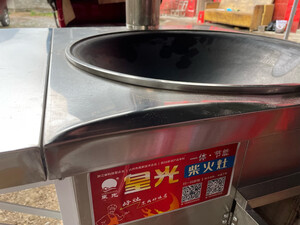 这大铁锅,这大铁灶,有轮子的,四个轮子,推着走,很好移动,非常方便的,过年过节做大锅菜非常方便,做出来很好吃的菜,挺好的。