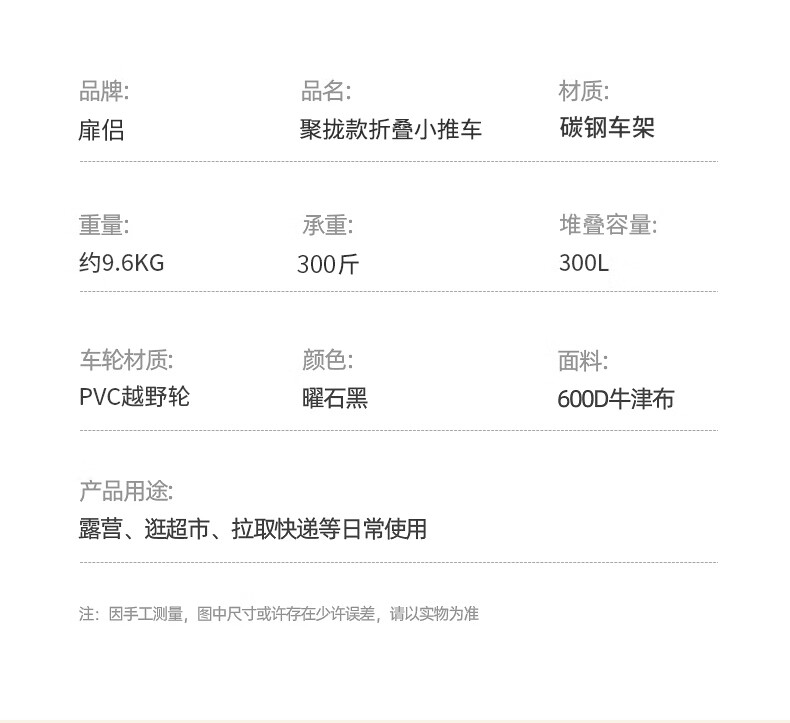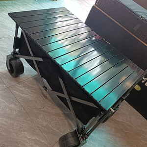 收到货了,包装很结实,拆开一看质量确实不错。轮子很顺滑,推起来特别轻松,去野餐的时候装了好多东西,一点不费劲。收纳也很方便,不占地方。家里人用了都说好。