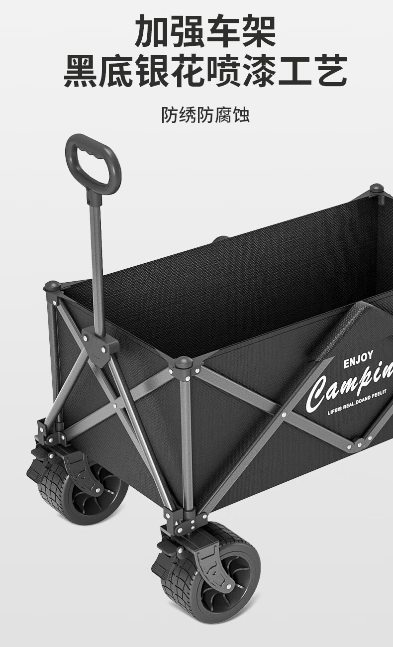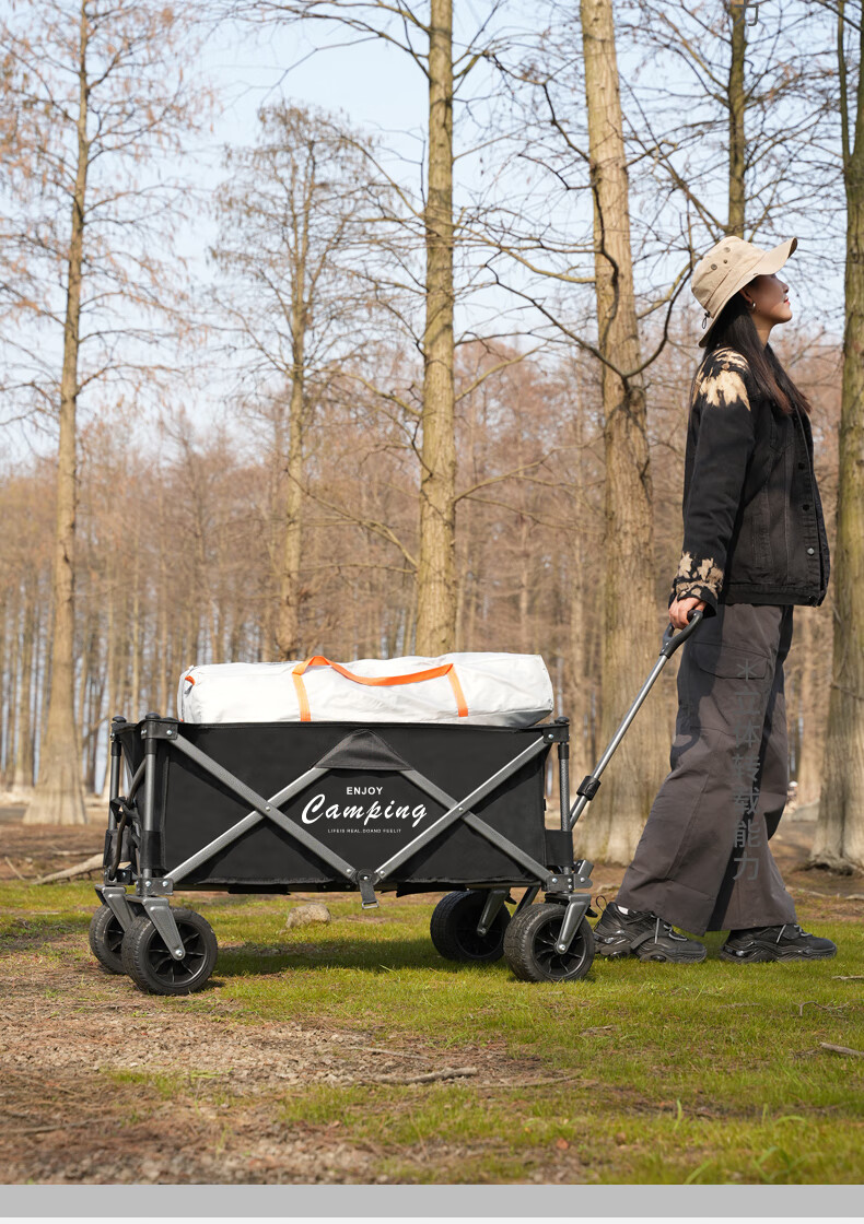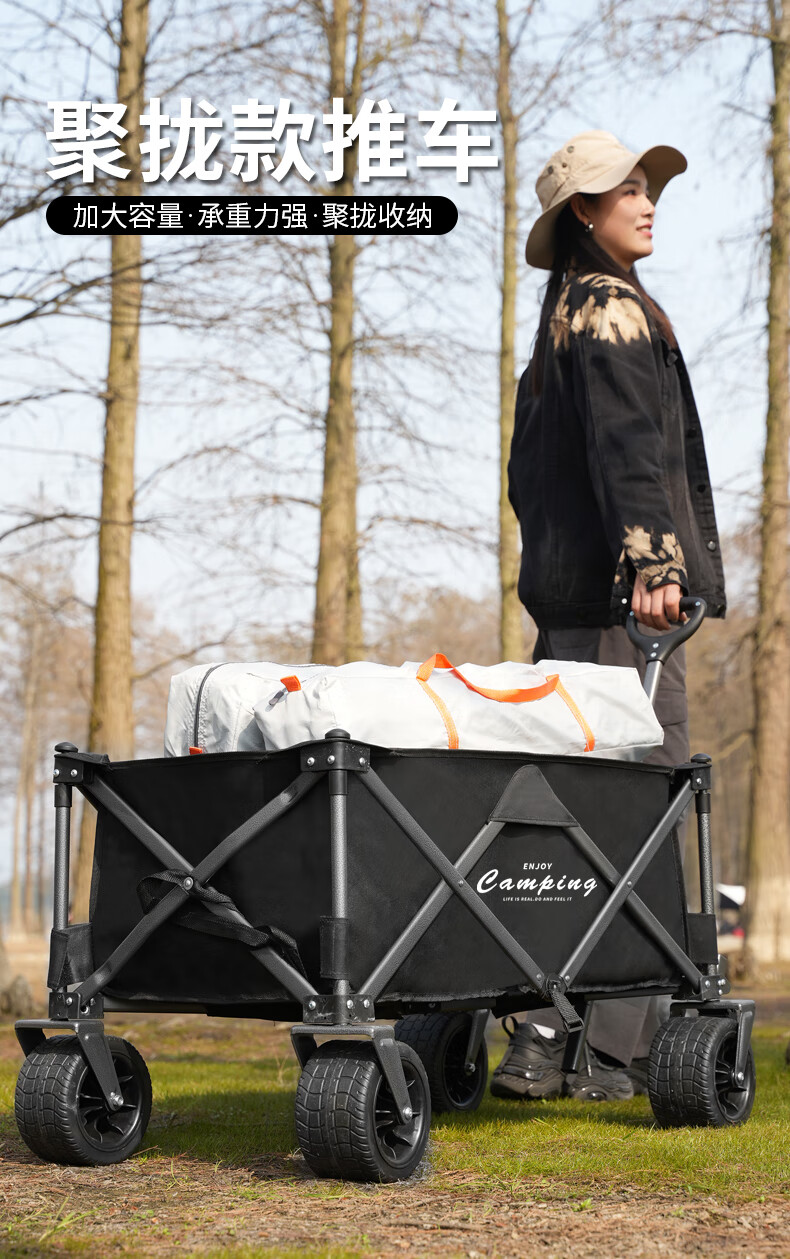 谷舰沐露营车聚拢款营地户外露营折叠小推车拉货摆摊溜娃 黑色款 中号款[静音轮]无刹车