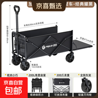 【骆驼制造商】户外野营手推车可折叠露营车购物便携摆摊小推车 暗夜黑五寸实心轮 50L 无刹车 折叠