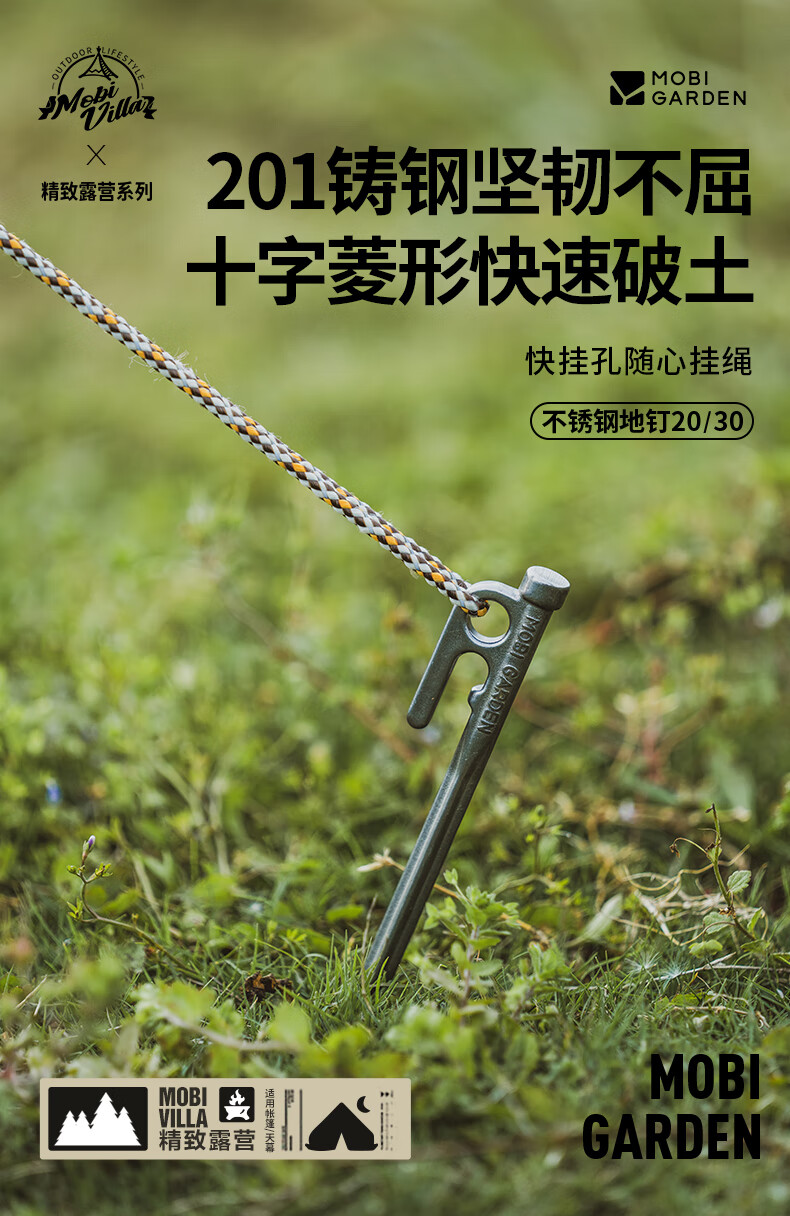 牧高笛(MOBIGARDEN)四菱地钉 户外露营多用途加长帐篷地钉大型天幕加粗钉子 四菱地钉20(4根装)
