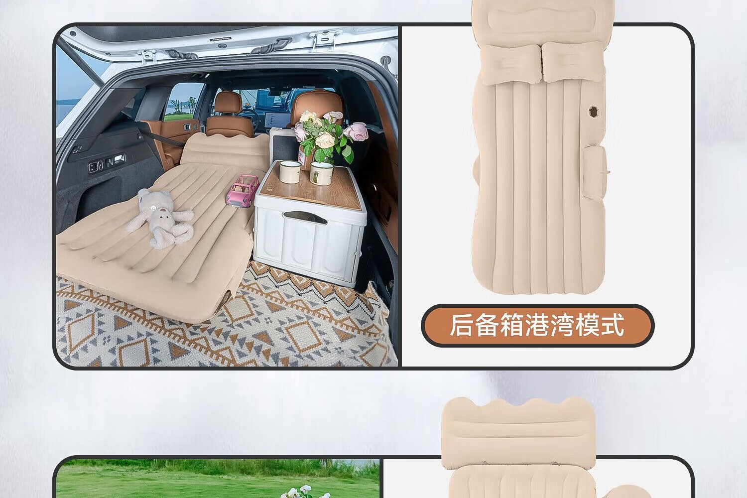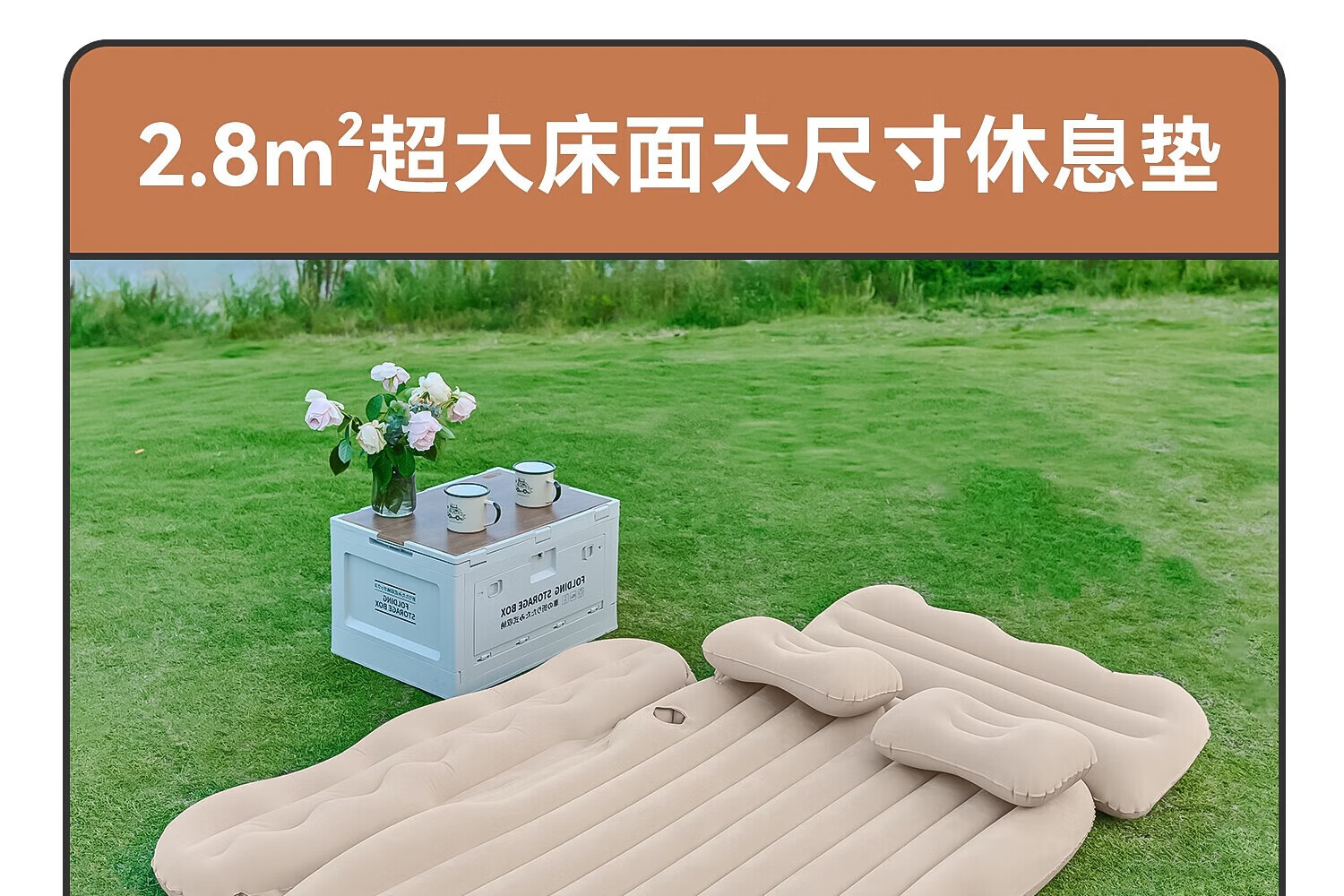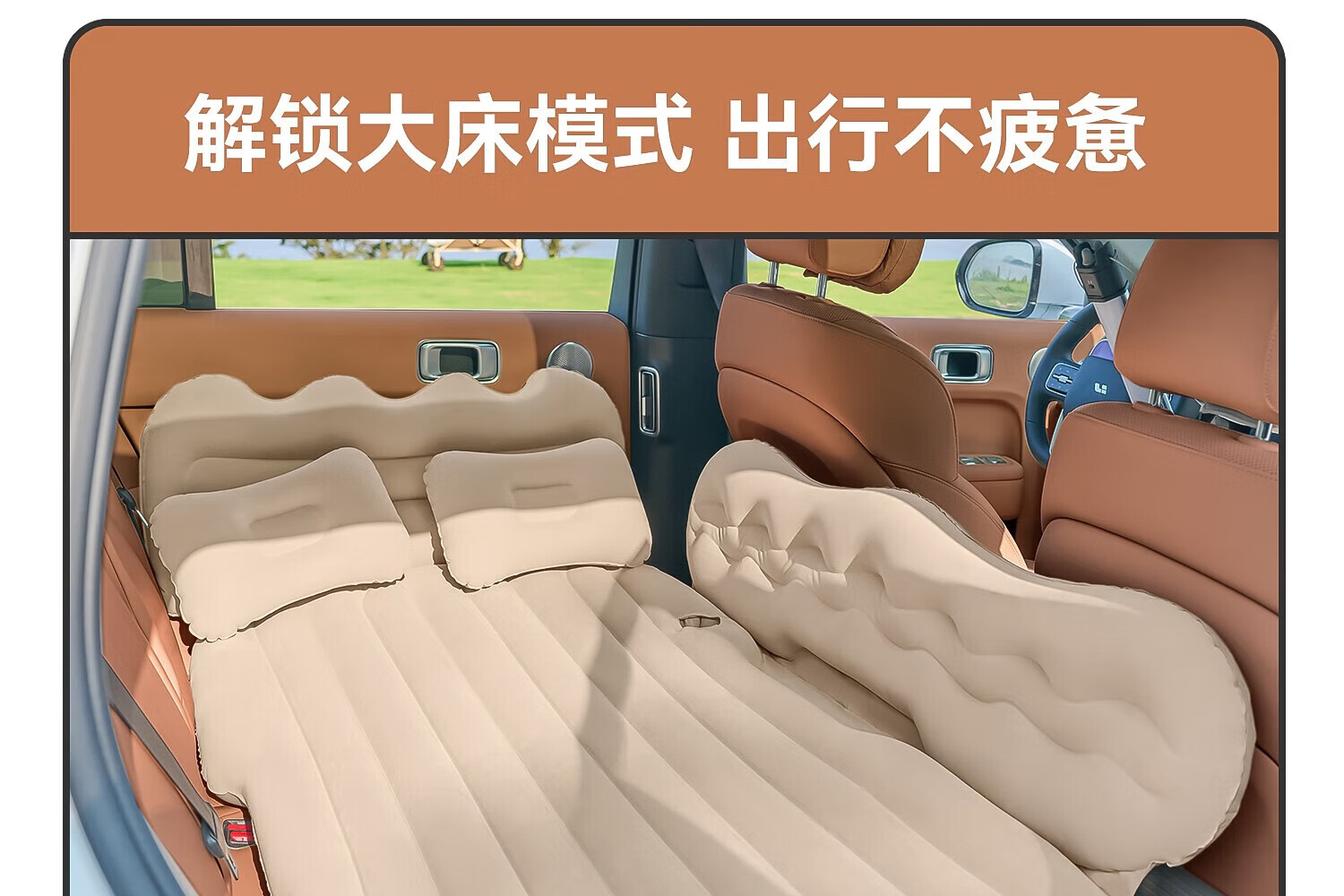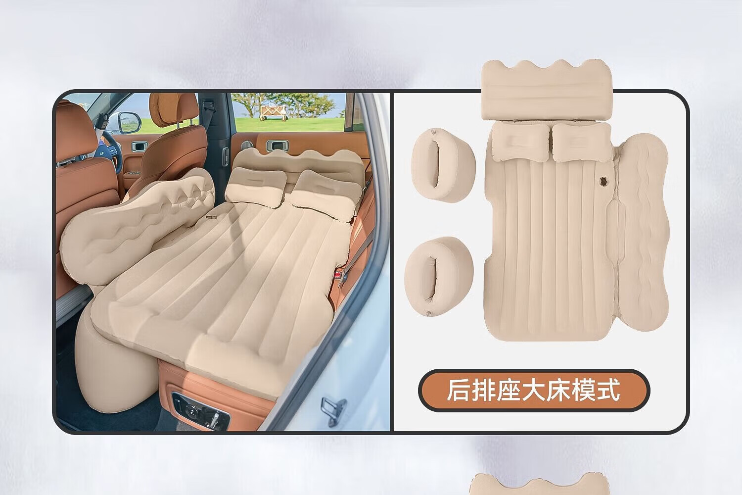 探险者充气床车载充气垫睡觉神器睡垫气垫加大加厚户外便携充气床 升级加厚-植绒米色自动充气款