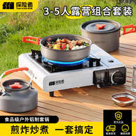 探险者户外锅具露营卡式炉锅具三件套野外炊具套装烧水壶露营装备全套 3-5人露营组合套装+网袋