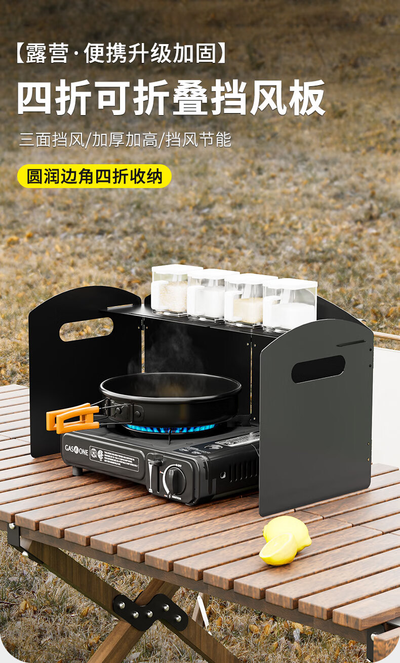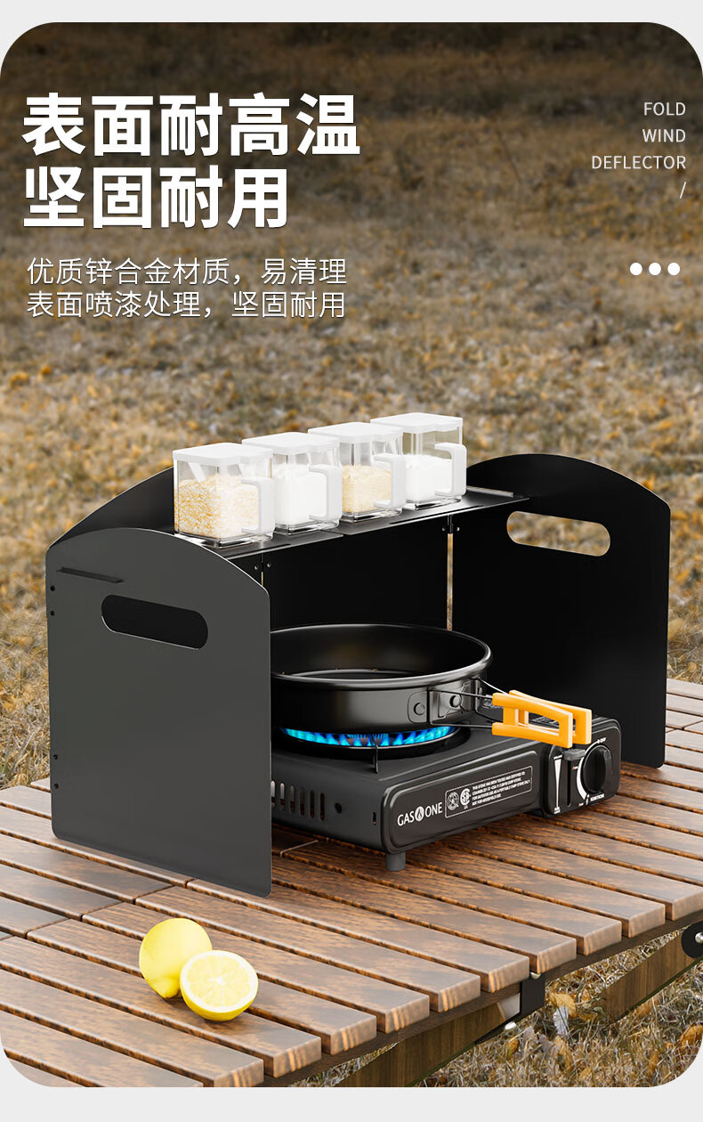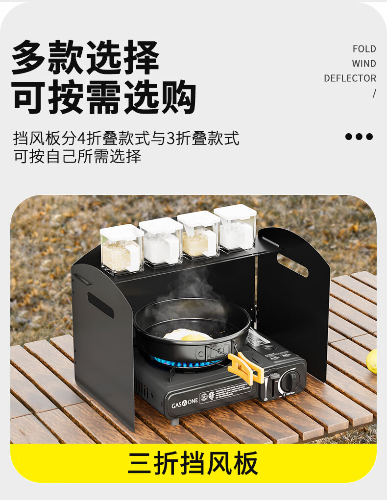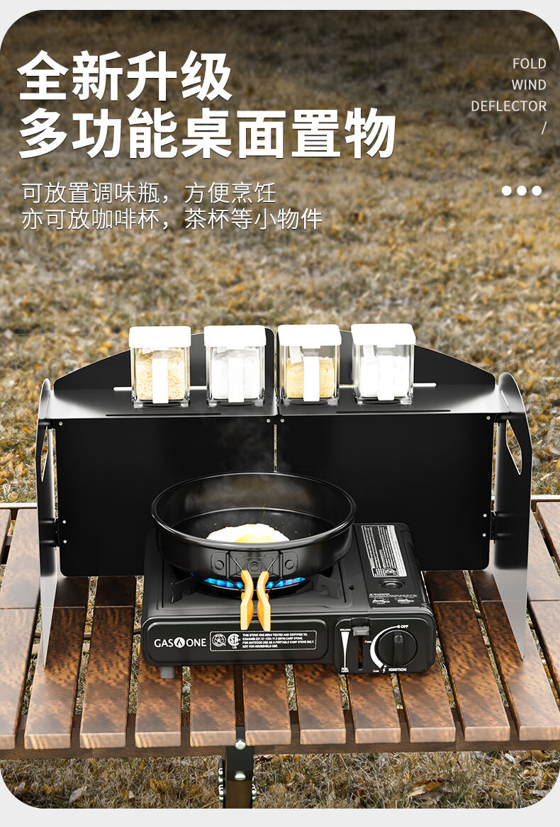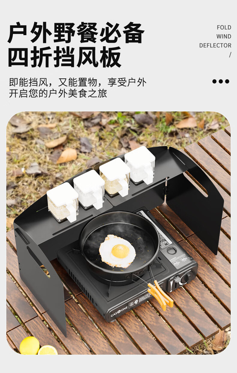 蝶烤香户外炉具挡风板加厚折叠卡式炉风板炉头灶具防风罩气炉风罩可置物 四折置物挡风板