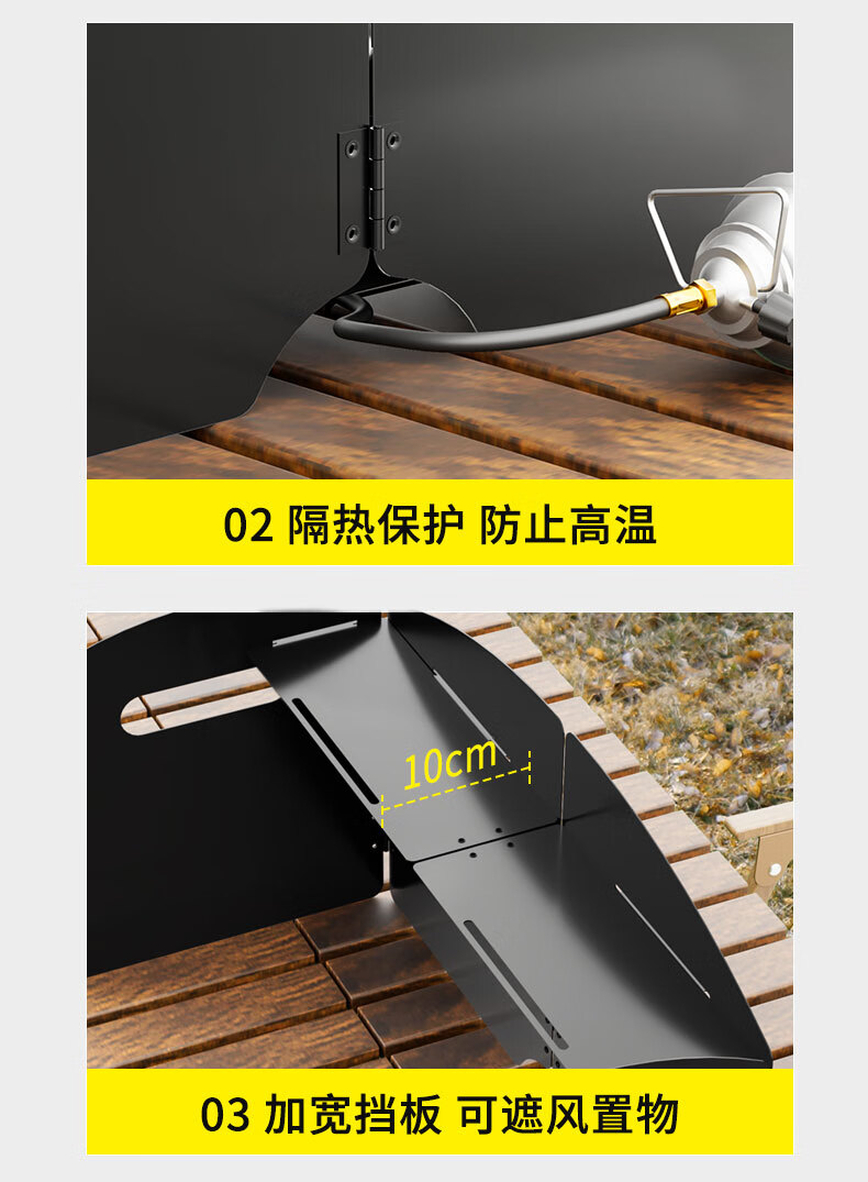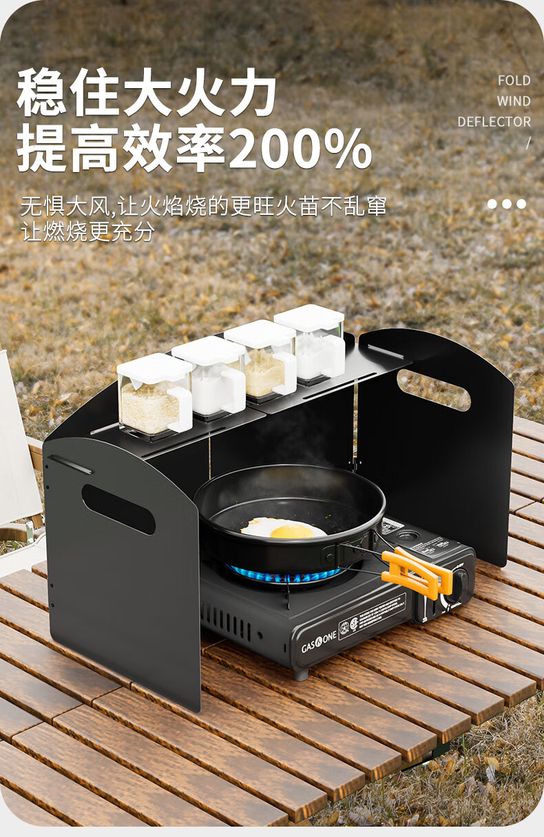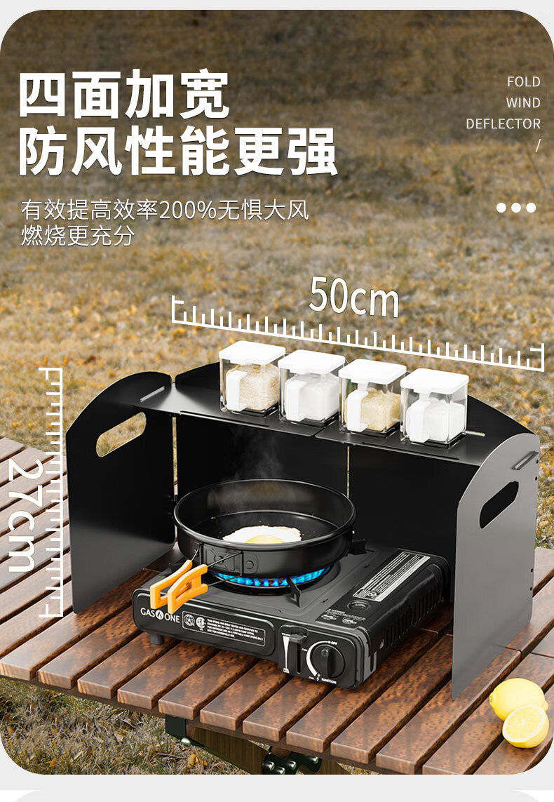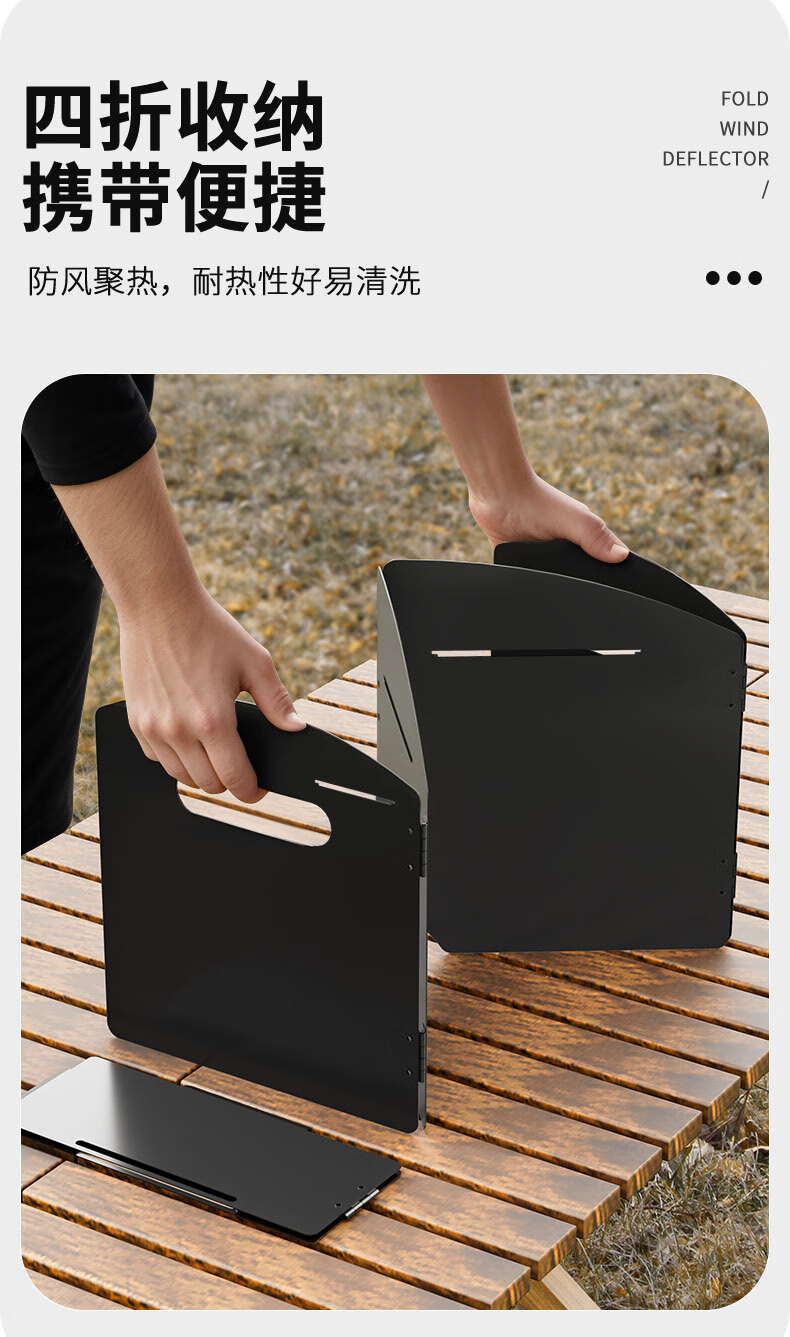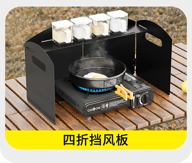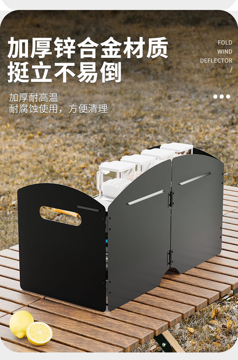 蝶烤香户外炉具挡风板加厚折叠卡式炉风板炉头灶具防风罩气炉风罩可置物 四折置物挡风板