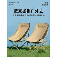 米囹户外月亮椅高背躺椅沙滩椅便携折叠椅露营折叠椅子钓鱼凳子 六层加厚加棉【称重500斤】卡其