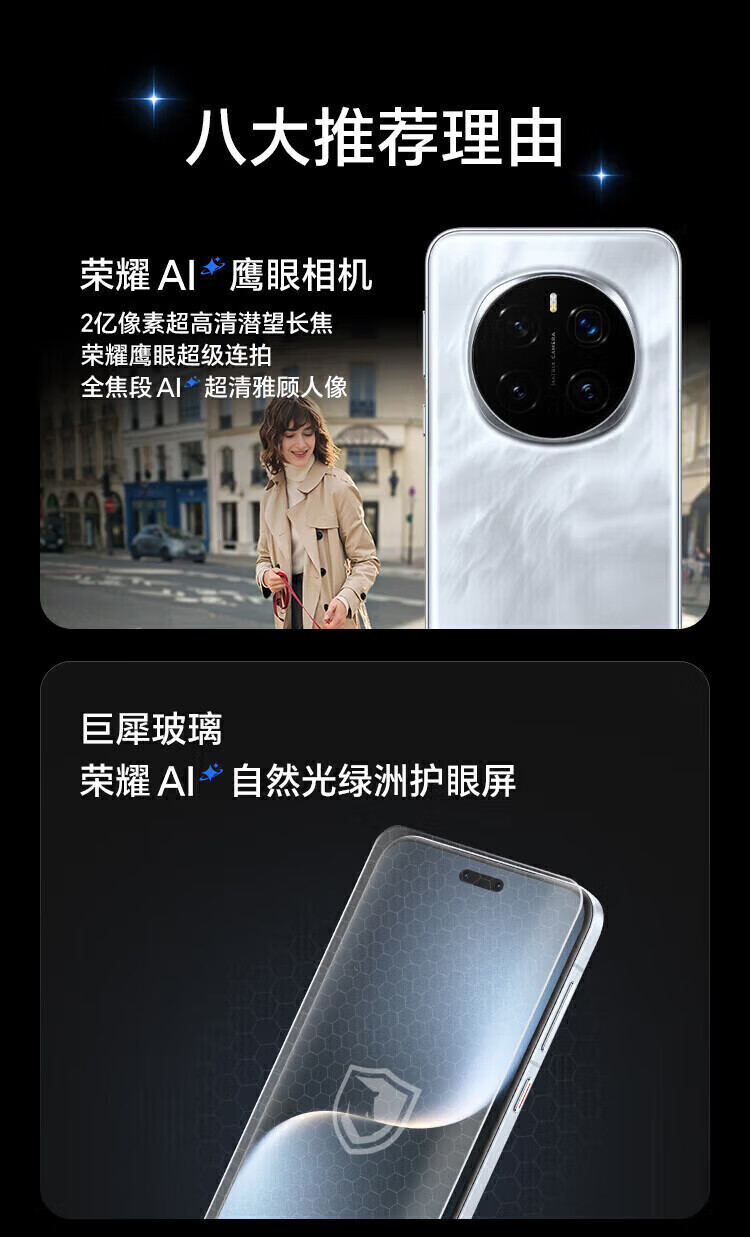 HONORMagic7 荣耀AI鹰眼相机 骁龙8至尊版 荣耀AI自然光绿洲护眼屏 荣耀手机 雪域白 12GB+256GB