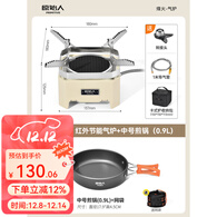 原始人户外卡式炉露营炊具燃气炉灶煮茶炉野炊装备全套便携式炉具分体式 米白卡式炉+中号铝合金煎锅