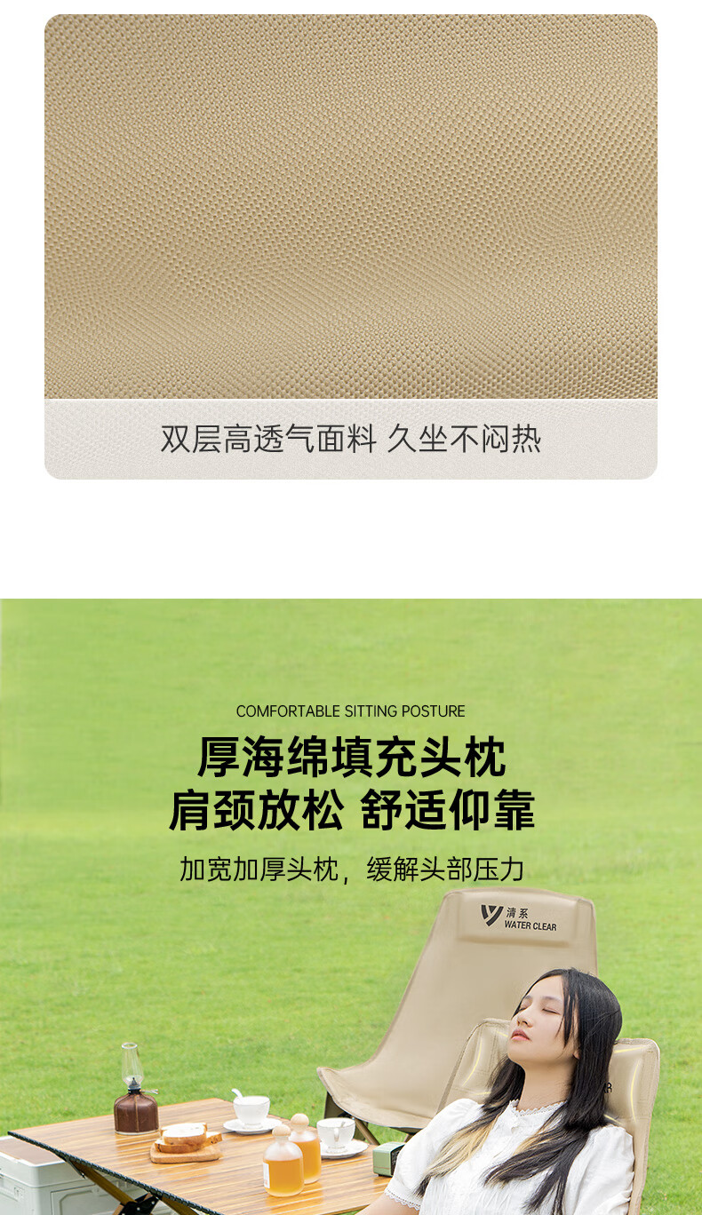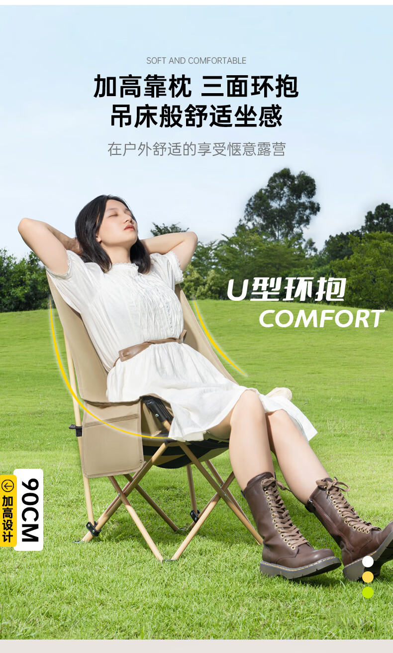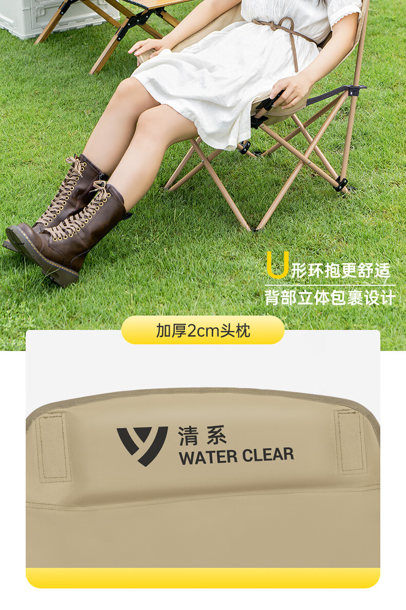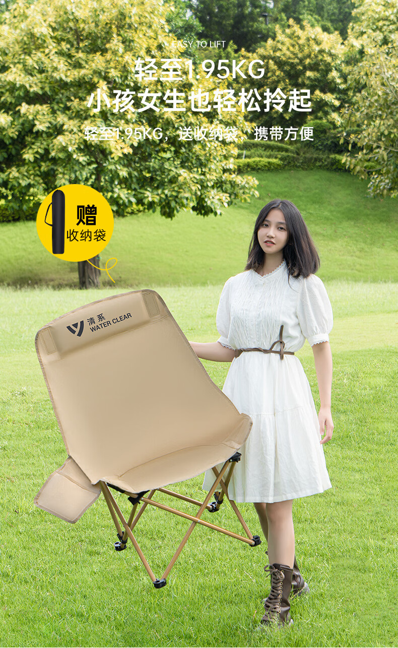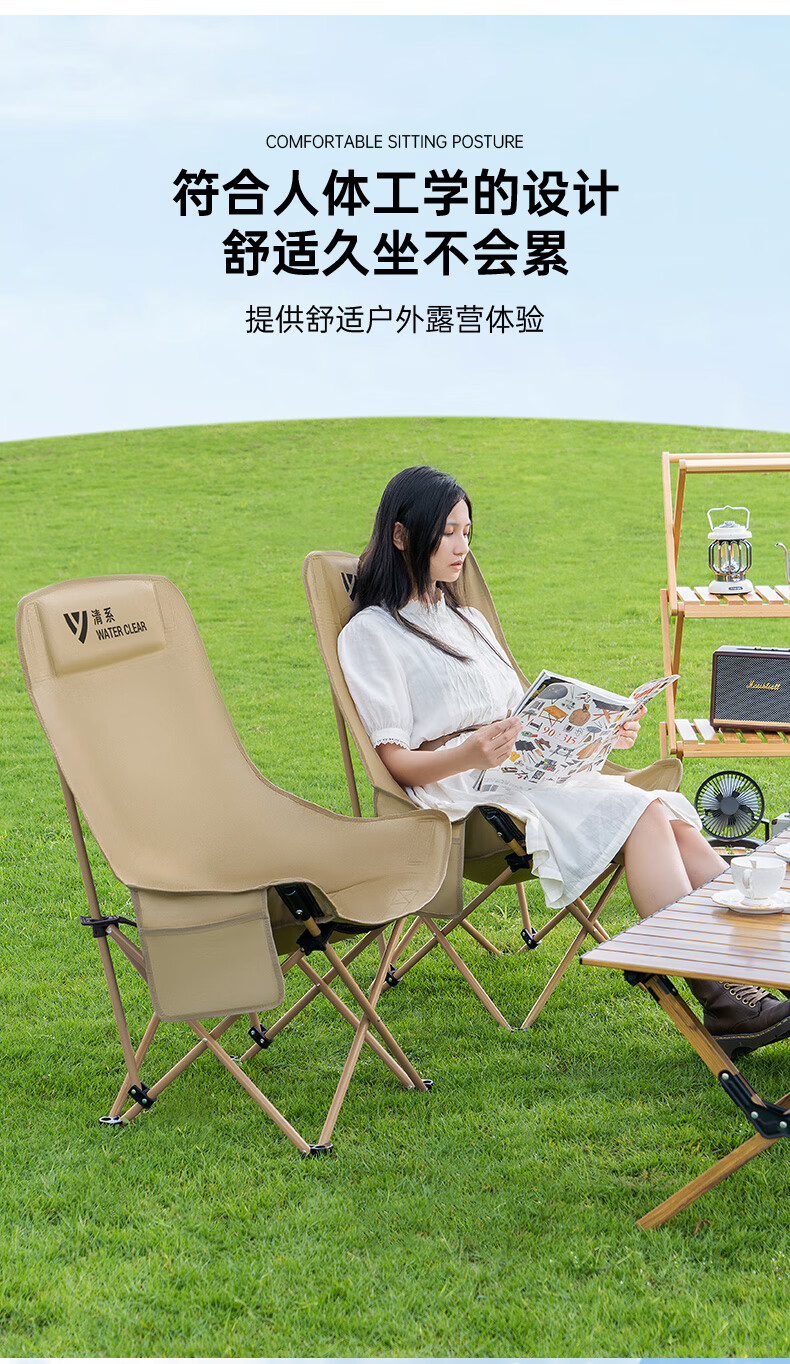 清系 户外月亮椅, 露营沙滩躺椅,钓鱼椅,折叠家用,商用,便携高靠背凳, 高背月亮椅,冬竹青颜色好看,坐着舒服,质量杠杠的,携带方便,露营野餐就选清系月亮椅