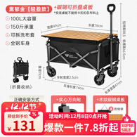 清系 户外露营折叠车野餐车营地车露营装备便捷拖车推车购物 旅游买菜 桌板套餐-便携款煤炭黑+木纹桌板