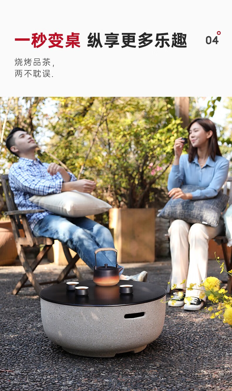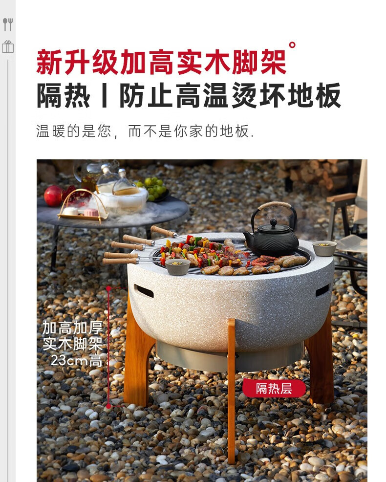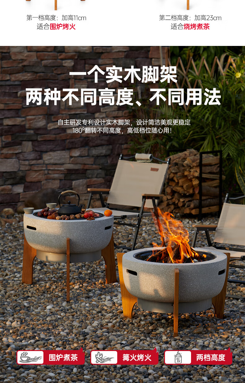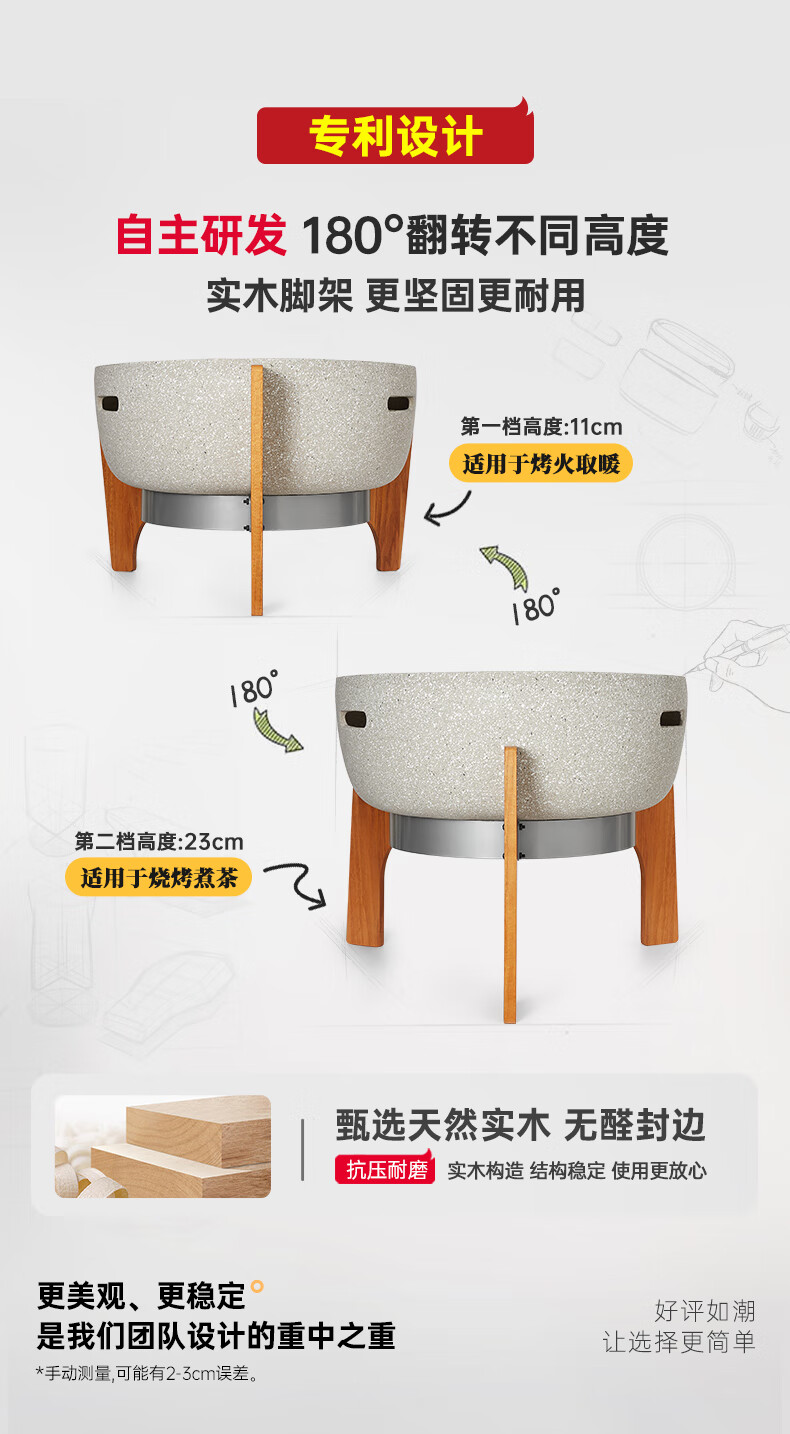 多功能又可以烤火烧烤又可以当茶几使用,怎的是太完美了,配上木架真的好高端的感觉,质量很好,很不错的围炉煮茶工具 客服很不错 很热情的推荐产品