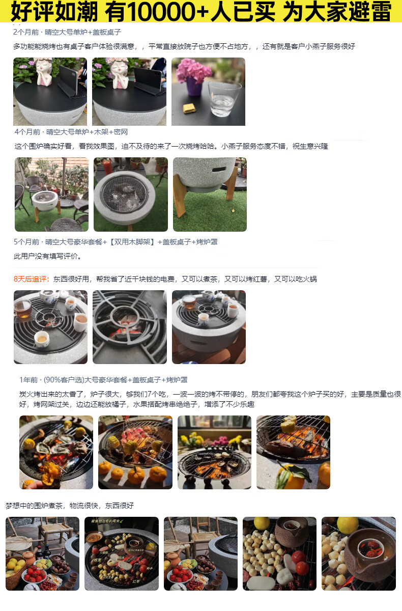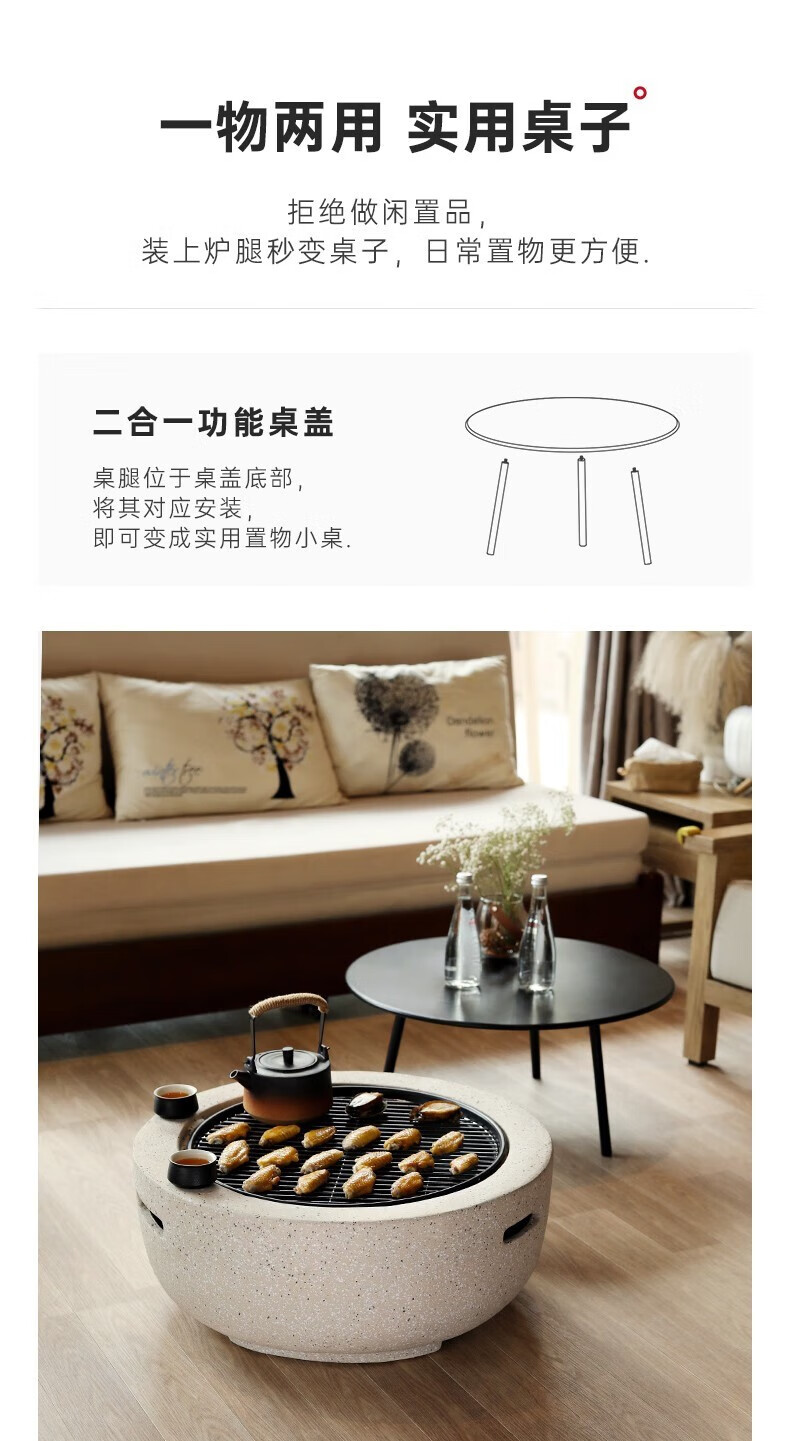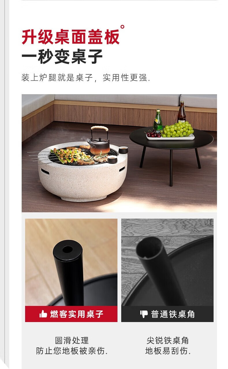 多功能又可以烤火烧烤又可以当茶几使用,怎的是太完美了,配上木架真的好高端的感觉,质量很好,很不错的围炉煮茶工具 客服很不错 很热情的推荐产品