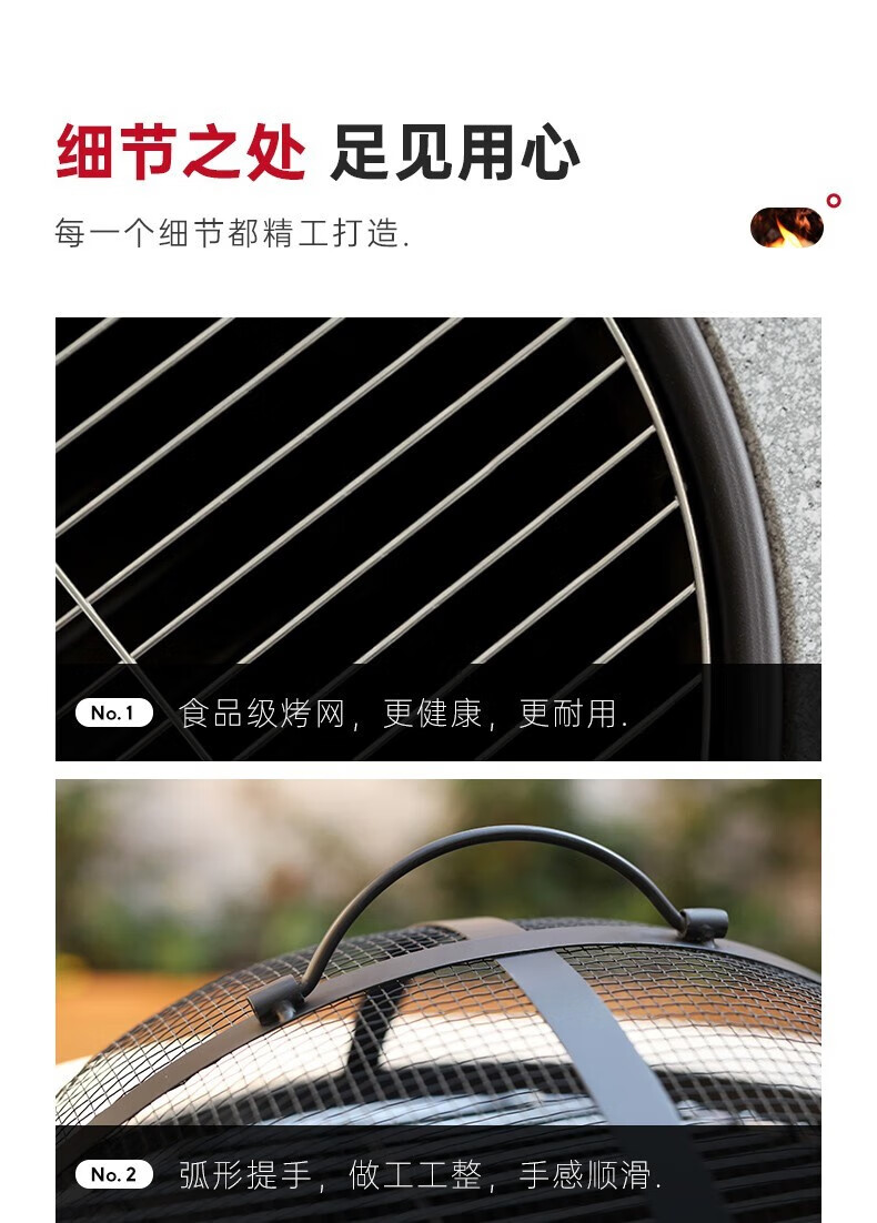 买来第二天就开始烧烤啦,因为颜值入的,烧烤,烤地瓜,取暖,外观大气 质量看着非常不错,刚开始用,服务很好很 到位,下次还会来这里买。