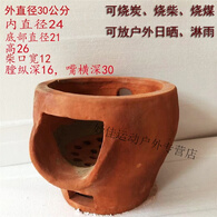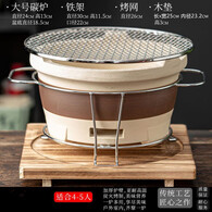 仕夕烁围炉煮茶家用室内老式炭炉家用打边炉泥碳炉户外烧烤陶土烤茶装备 大号炭炉+烤网+烤架+26#木垫