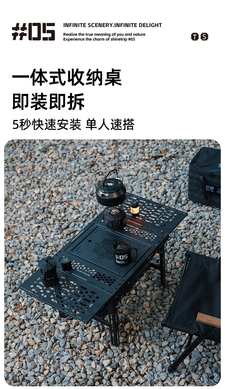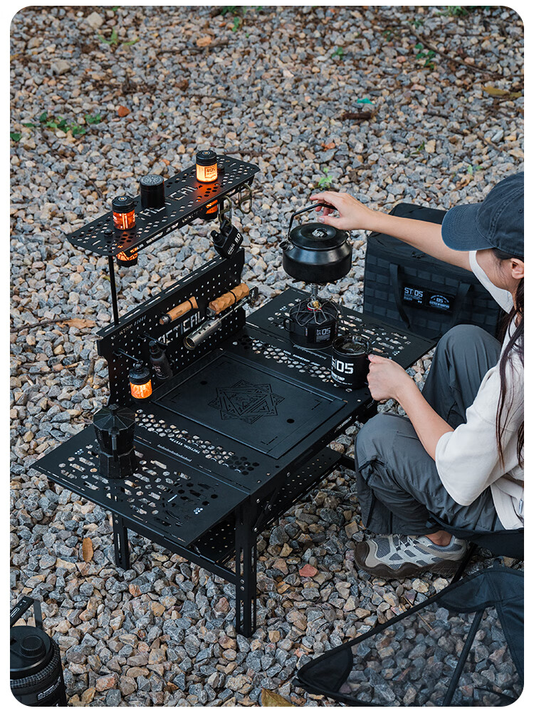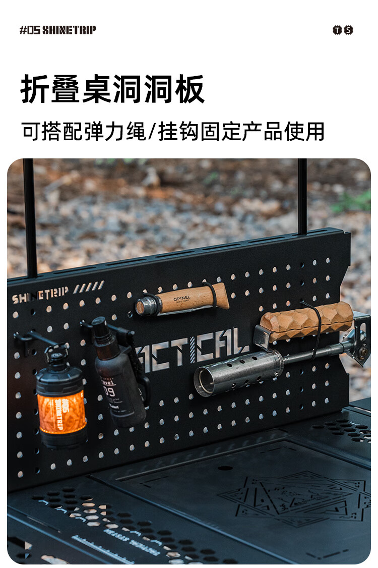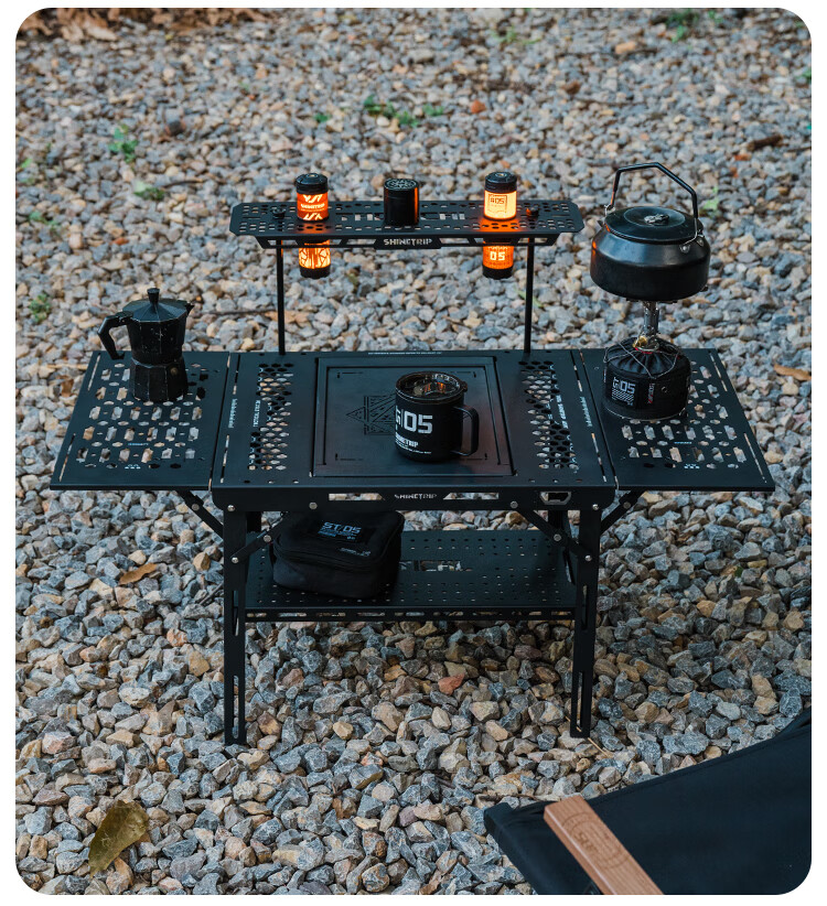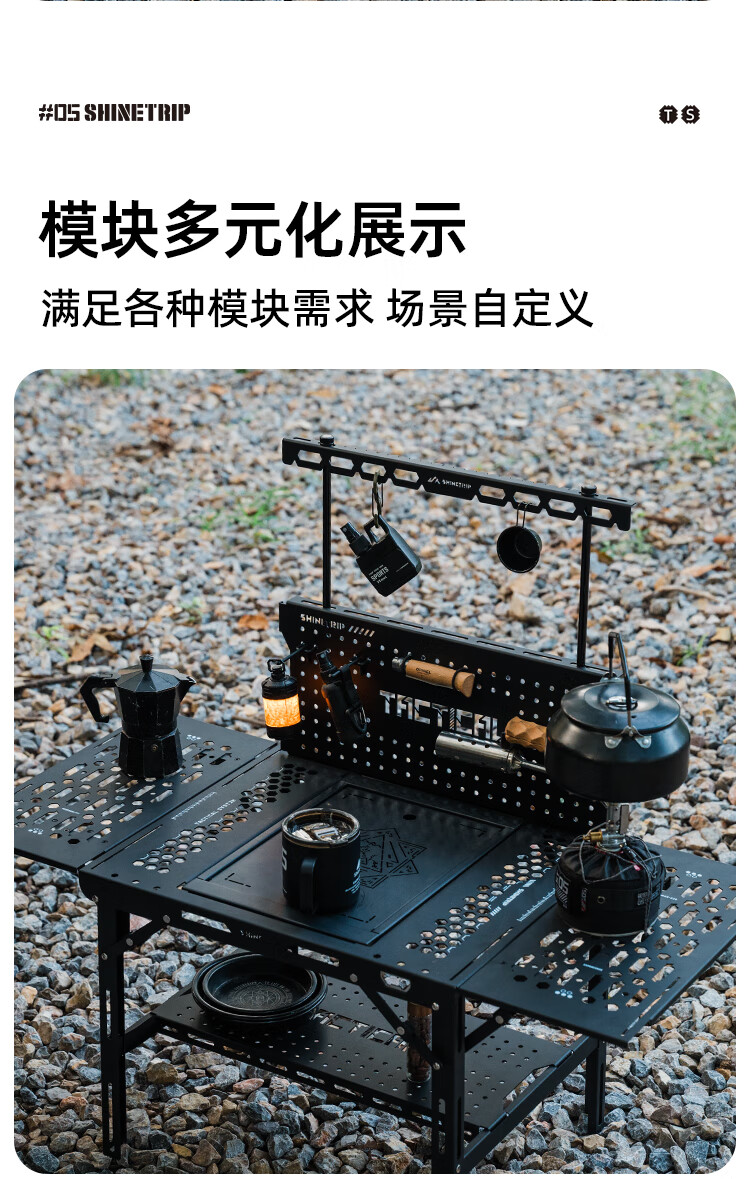山趣(ShineTrip)户外05系列暗翼IGT战术折叠桌露营桌便携多功能铝合金多用途桌 折叠桌+茶盘+洞洞板*2+层板(不含工具炉具杯具灯)