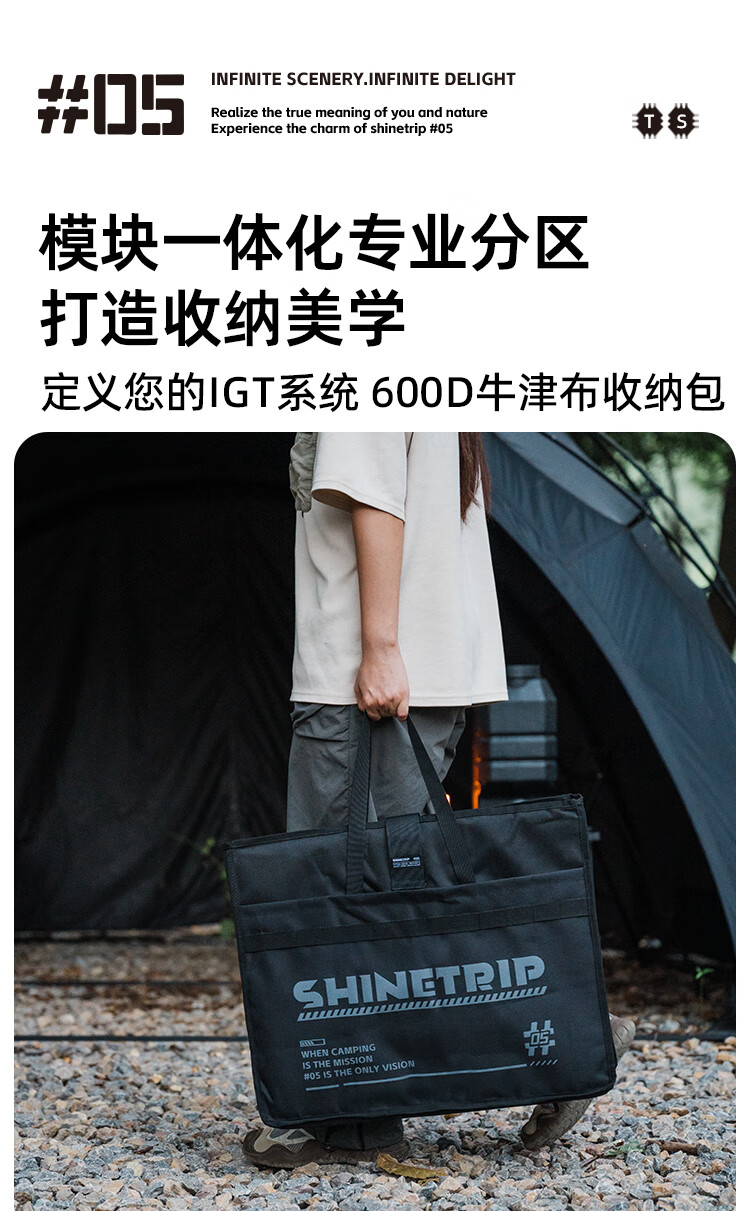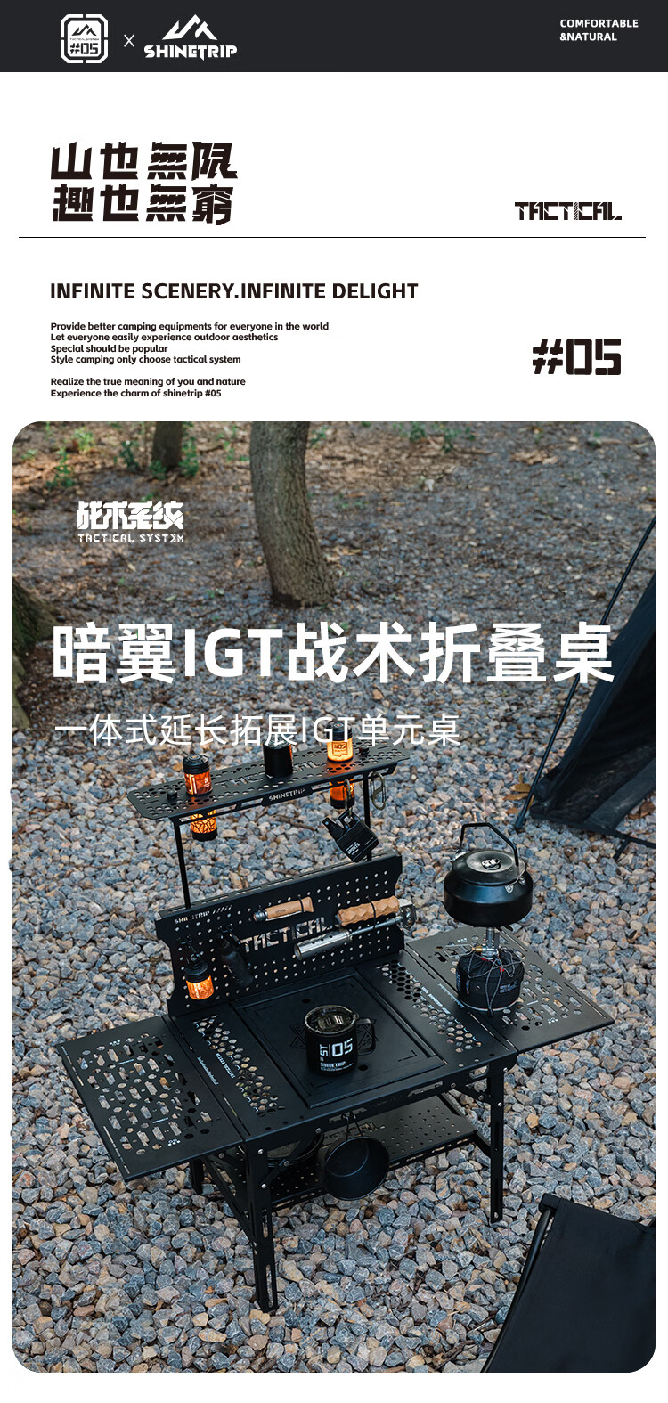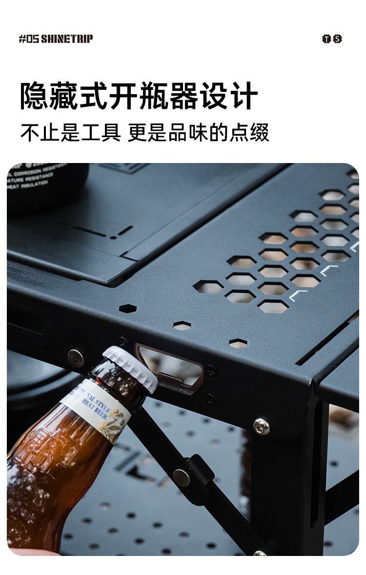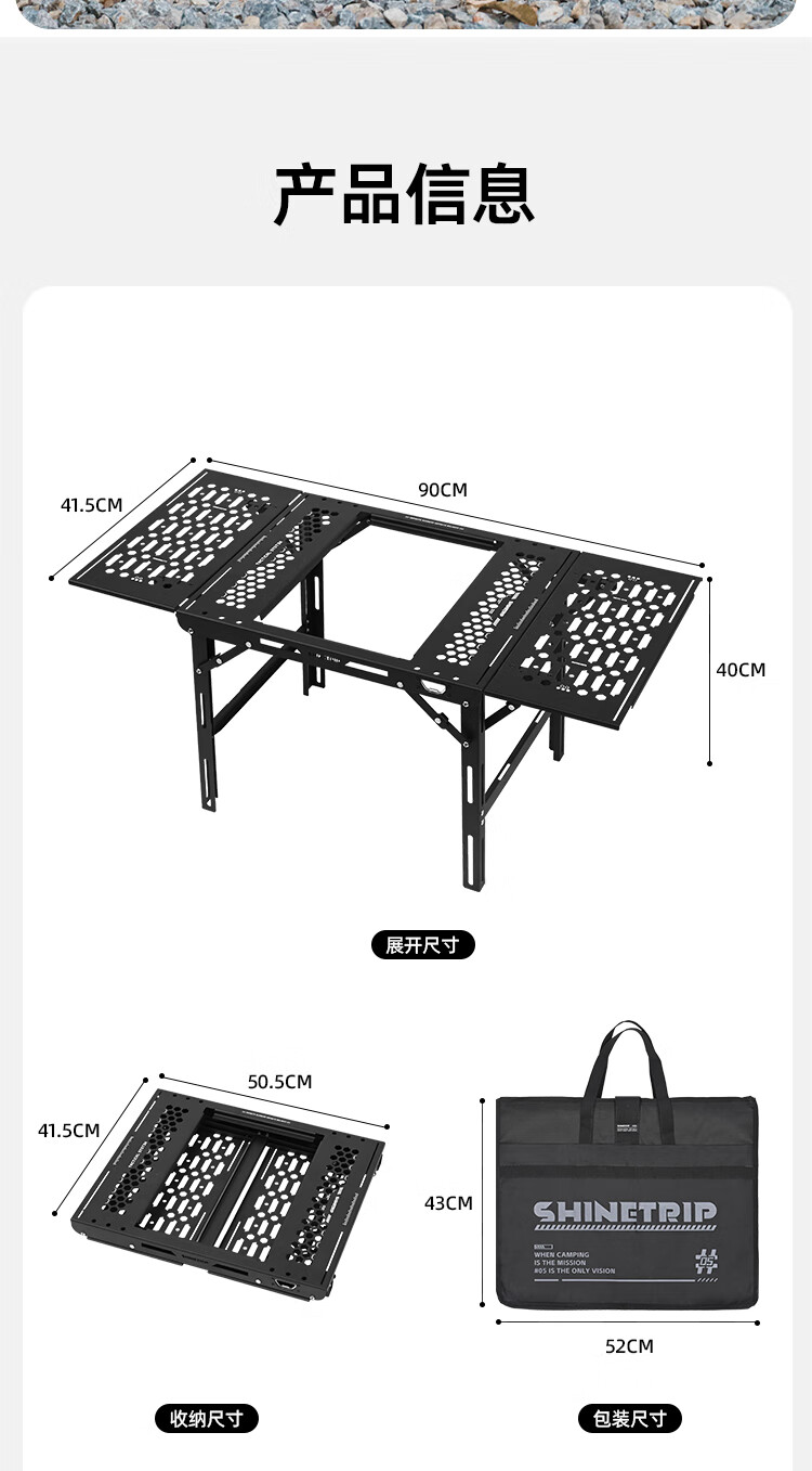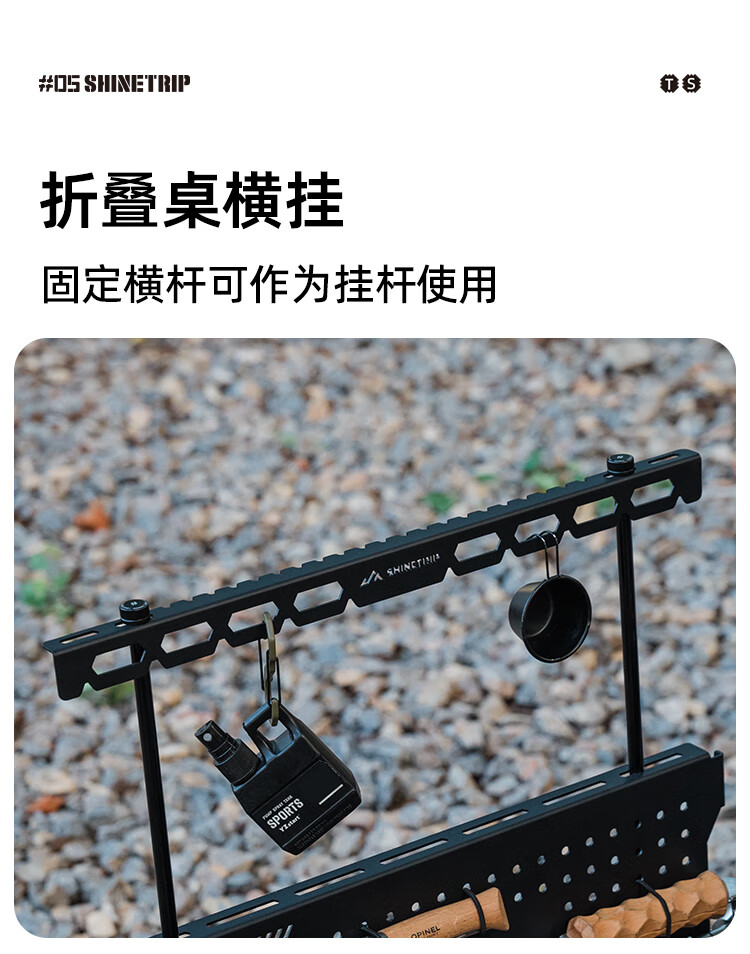 山趣(ShineTrip)户外05系列暗翼IGT战术折叠桌露营桌便携多功能铝合金多用途桌 折叠桌+茶盘+洞洞板*2+层板(不含工具炉具杯具灯)