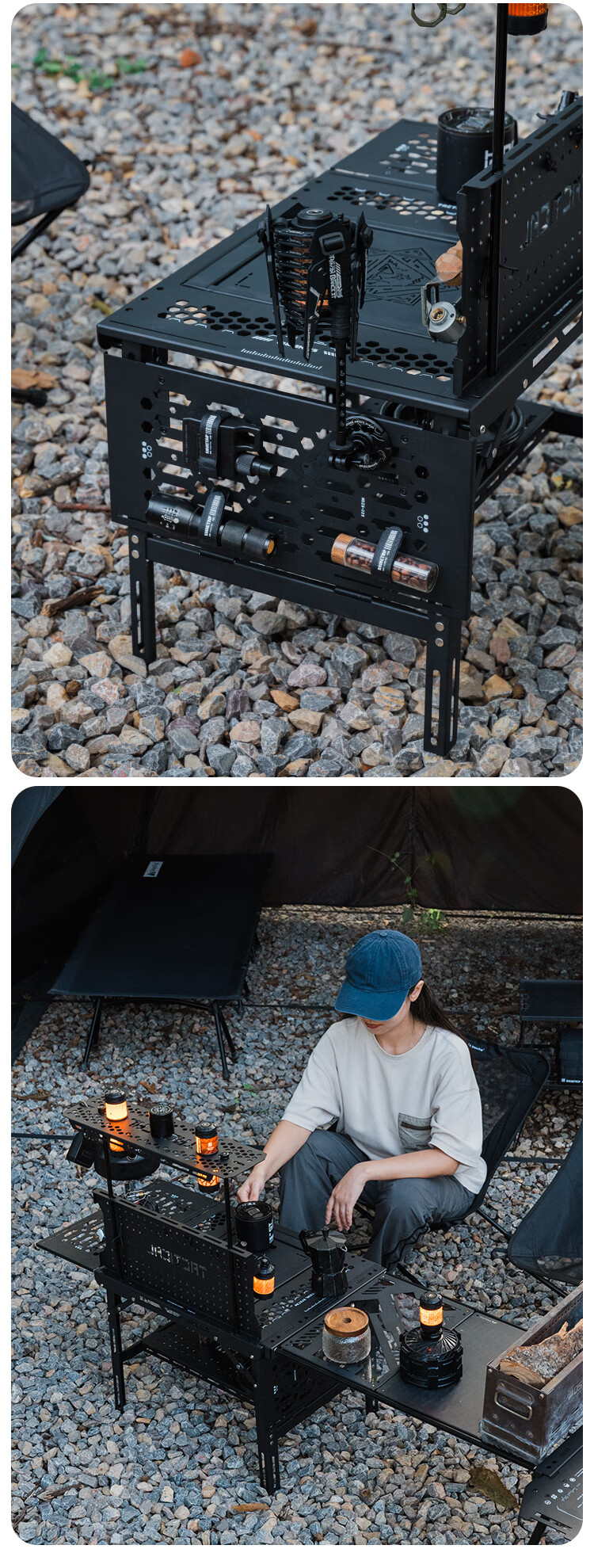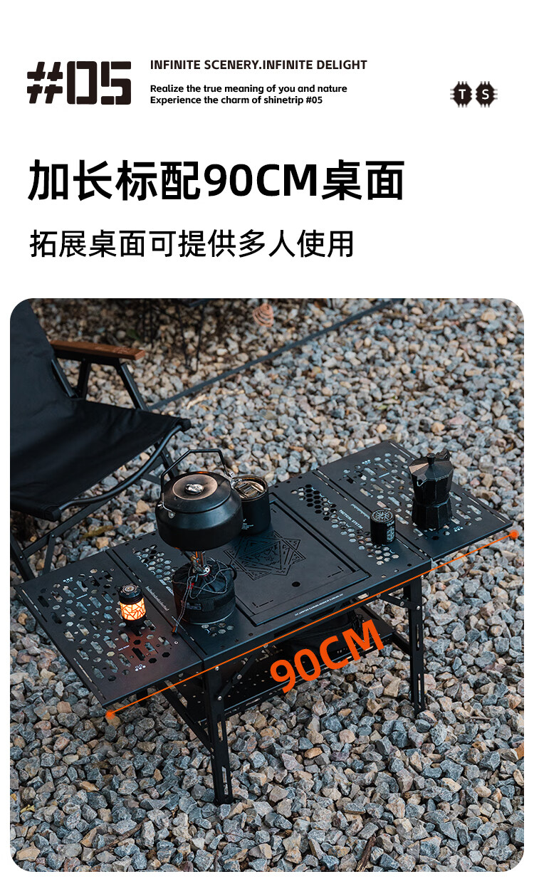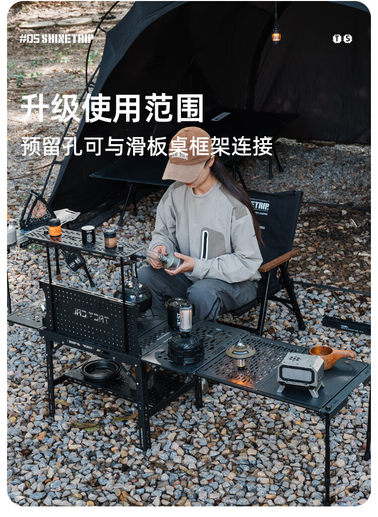 山趣(ShineTrip)户外05系铝合金战术滑板桌黑化露营多功能便携IGT可拓展置物板桌 滑板桌套装-大号L+单元板*3+灯架*1+咖啡架*1+底板*1