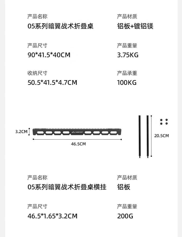 山趣(ShineTrip)户外05系列暗翼IGT战术折叠桌露营桌便携多功能铝合金多用途桌 暗翼折叠桌
