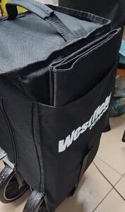 买来有半个月了,刚拿回来的时候有一些味道,晾了晾,现在味道正常了。总体感觉质量不错,拉手可以上下调节,但拉着没有自动回弹,需要卡到卡扣里才可以,轮子比较大,平时拉个东西够用了。