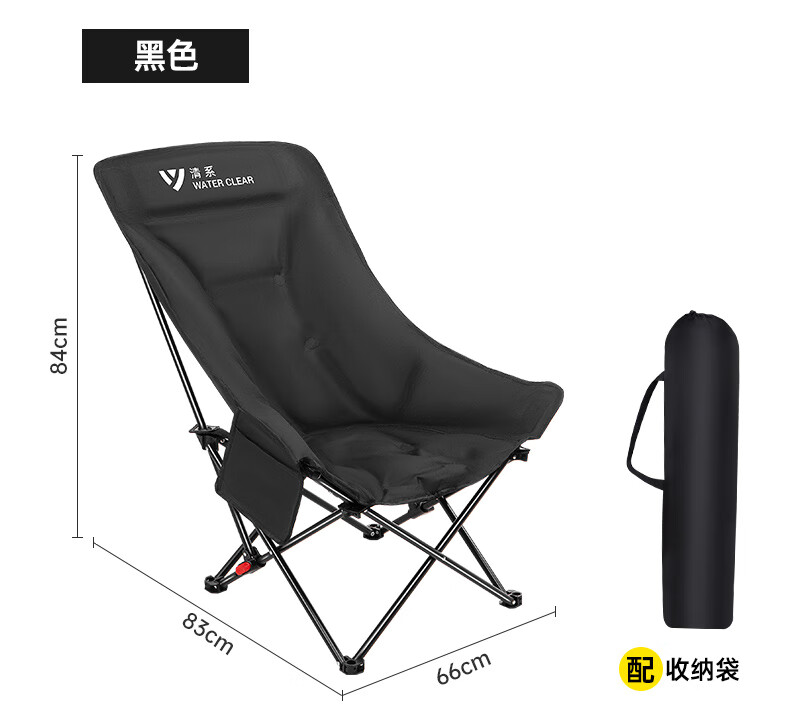 清系户外太空棉月亮椅露营沙滩躺椅钓鱼椅折叠家用商用便携高靠背凳 【四档】太空棉高背月亮椅黑色