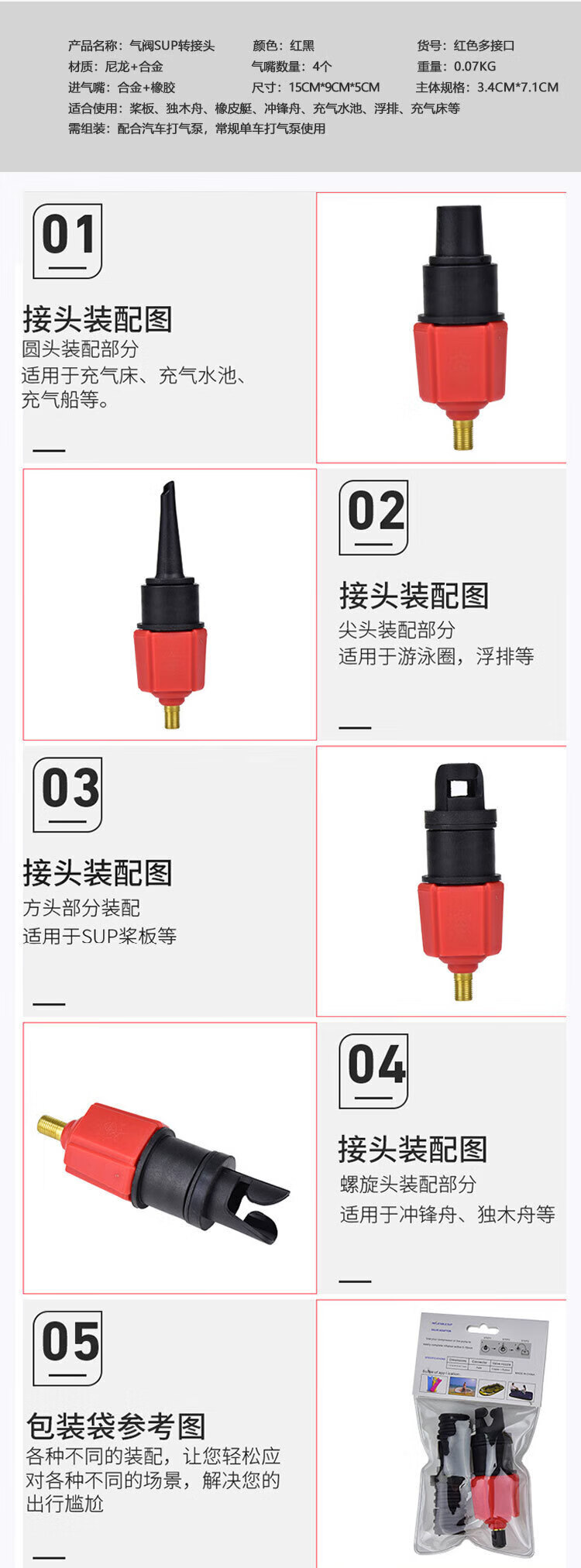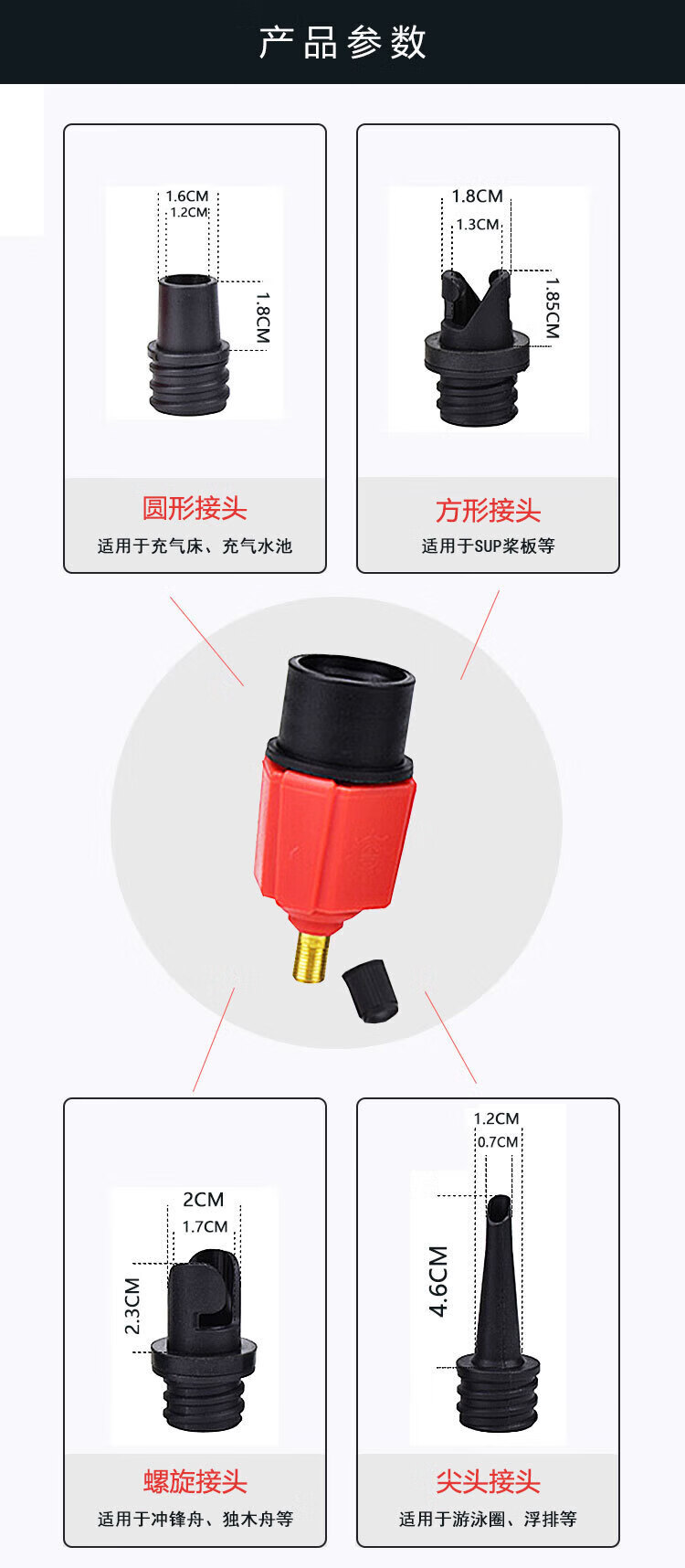 帐篷充气泵充气床垫转接头气嘴橡皮艇浮排气垫床游泳圈转换 车载充气泵充游艇转换头1个头