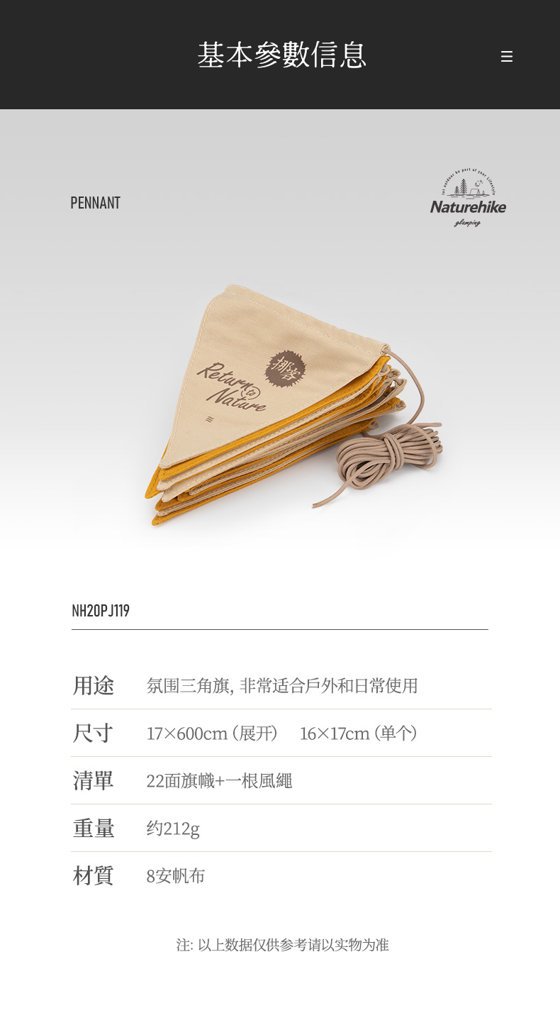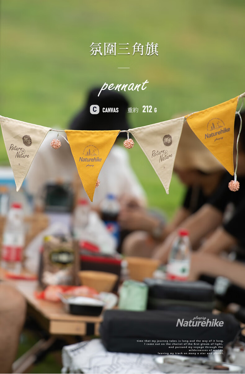 挪客Naturehike户外露营氛围三角旗野营派对装饰节日团队生日旗子 橙黄/卡其.