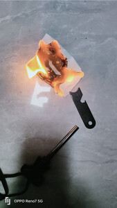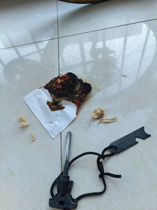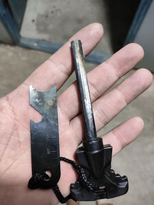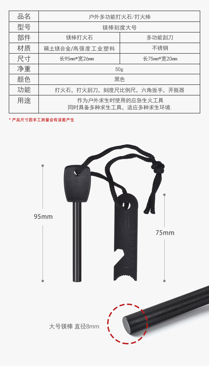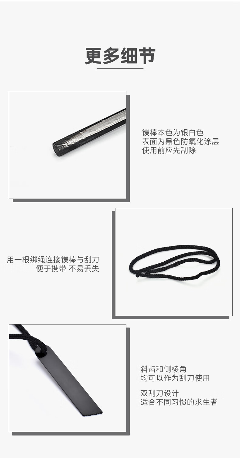 图片就不用再配了,跟商品链接中的完全一样。刚拿到手,我还半信半疑,结果照着视频里操作方法,用一张纸巾,刮下一点镁棒的碎屑,在用力跟火镰摩擦,这个动作一定要贴近纸巾去做,只用了两下就点燃了,比想象中容易,又学会了一项野外生存技能