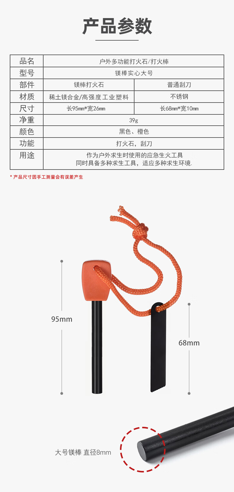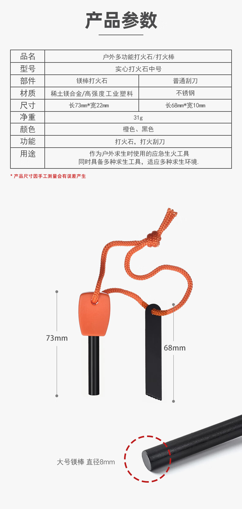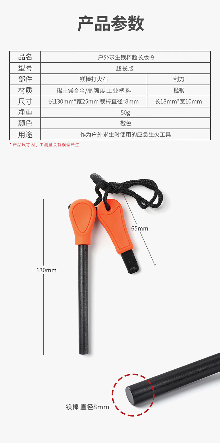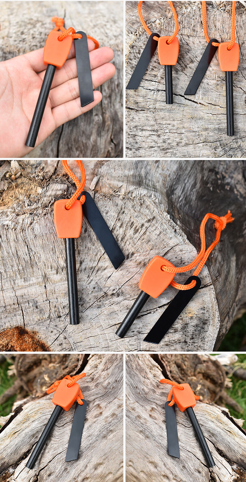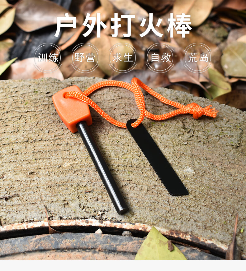 野外打火石取火镁棒荒野求生火石棒户外BC生火棒防水引燃点火神器 多功能户外打火棒-橙色 无规格