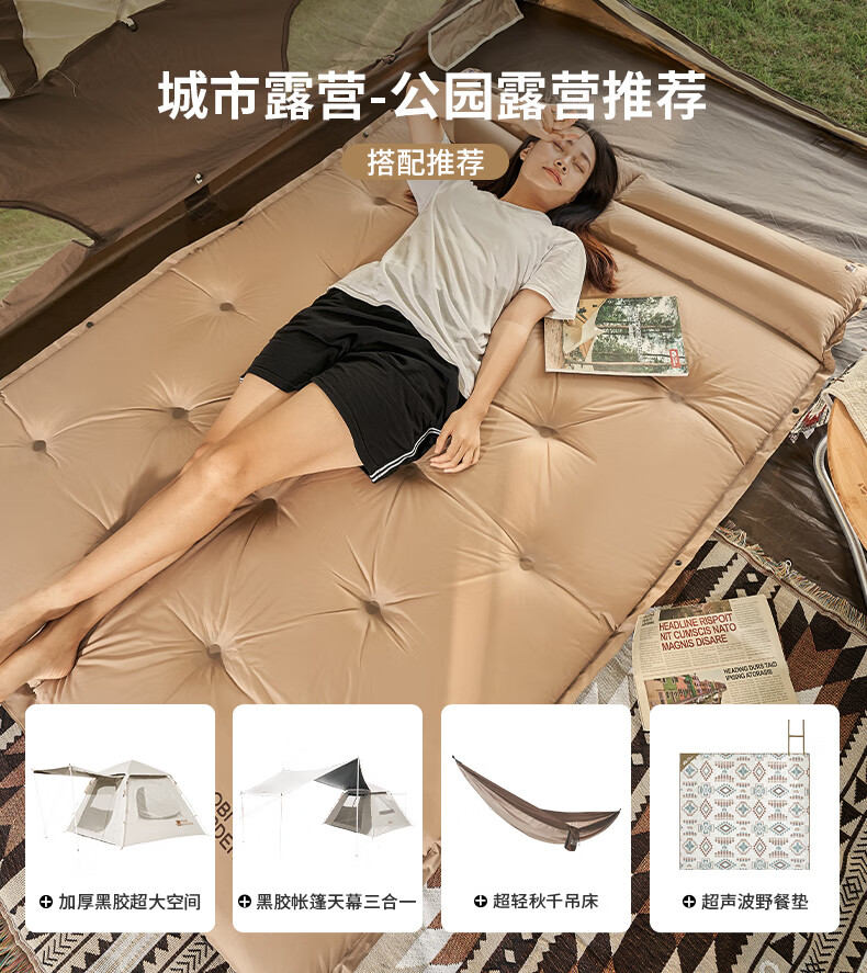 体验感非常一般,第一,垫资子没有视频宣传那样快速膨胀的效果,勉强使用。第二,帐篷有点瑕疵,又说是正常现象😟